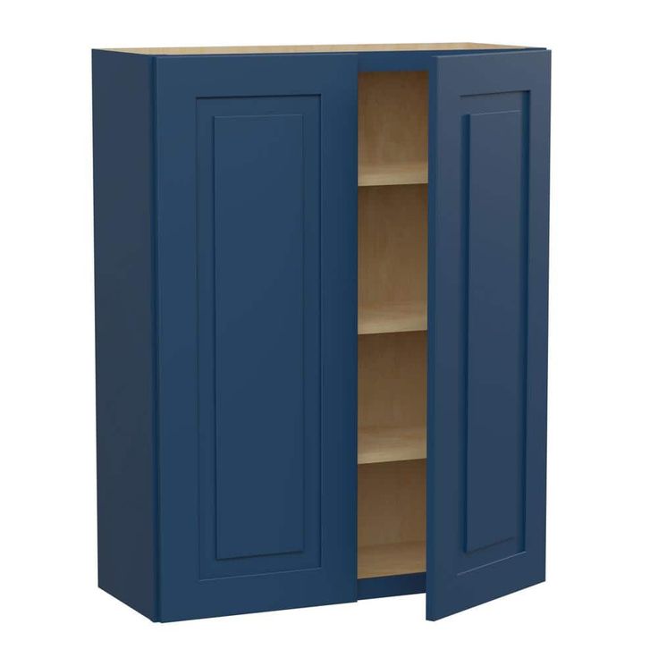 Elevate your kitchen's style and functionality with the Home Decorators Collection Grayson Mythic Blue Kitchen Cabinet. This exquisite plywood wall cabinet pairs a sophisticated dark blue finish with state-of-the-art soft-close technology to ensure quiet operation. Built for both beauty and durability, it features a solid MDF raised center panel design and adjustable shelves to accommodate all your storage needs.