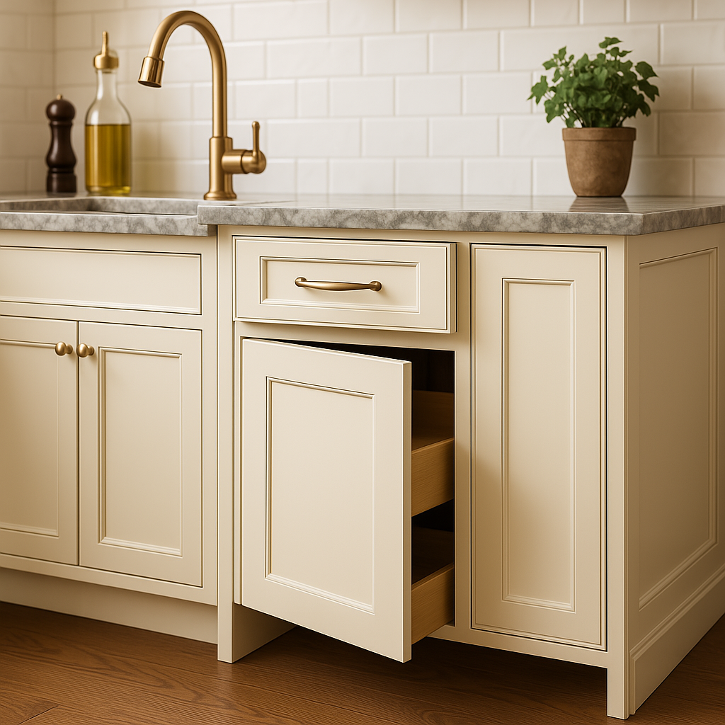 The Newport Kitchen Cabinet in Blended Cream combines timeless Shaker-style design with modern functionality. Featuring durable all-plywood construction, soft-close mechanisms, and a multi-step painted finish, this cabinet is a perfect addition to any kitchen.