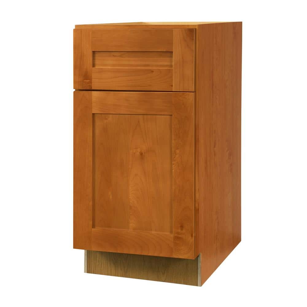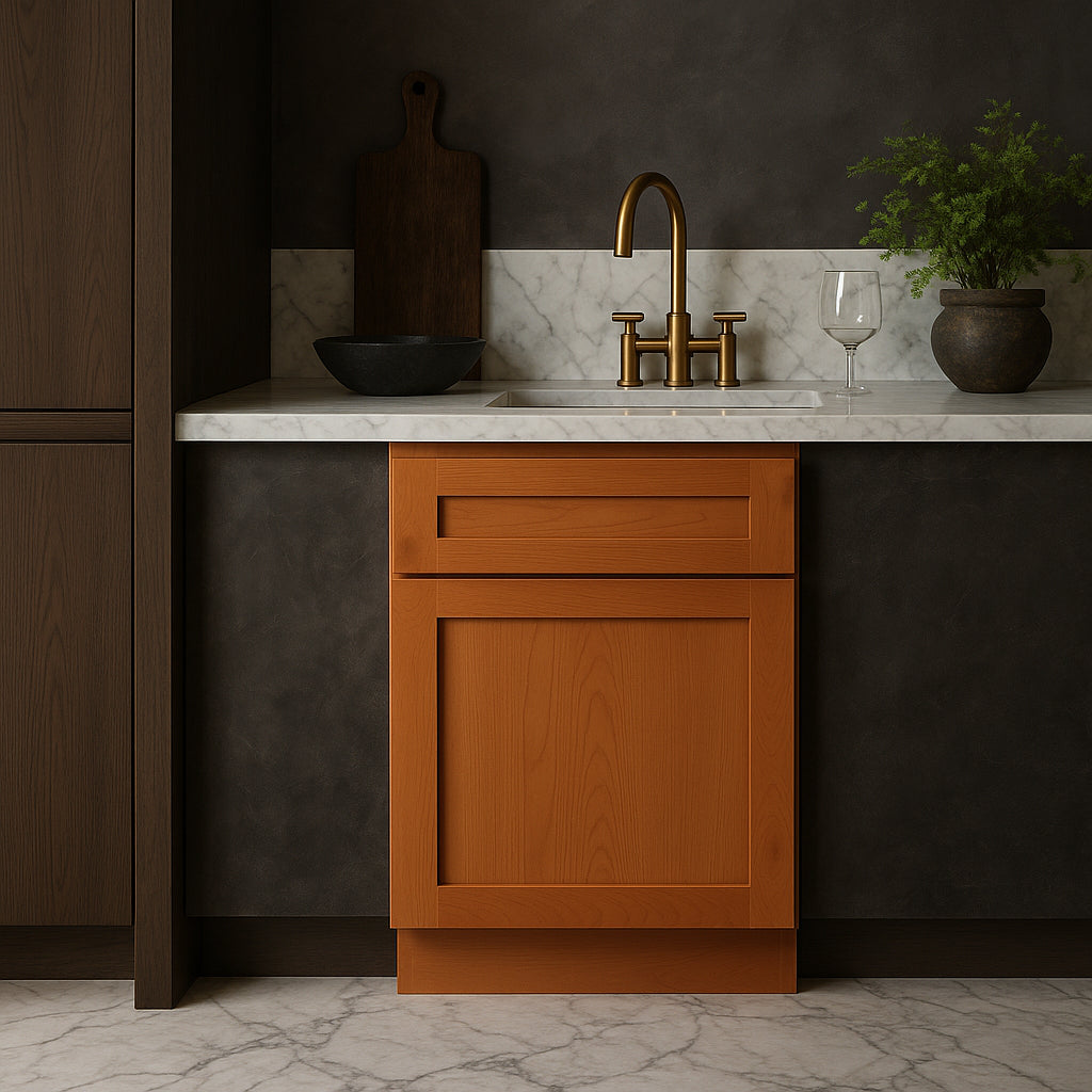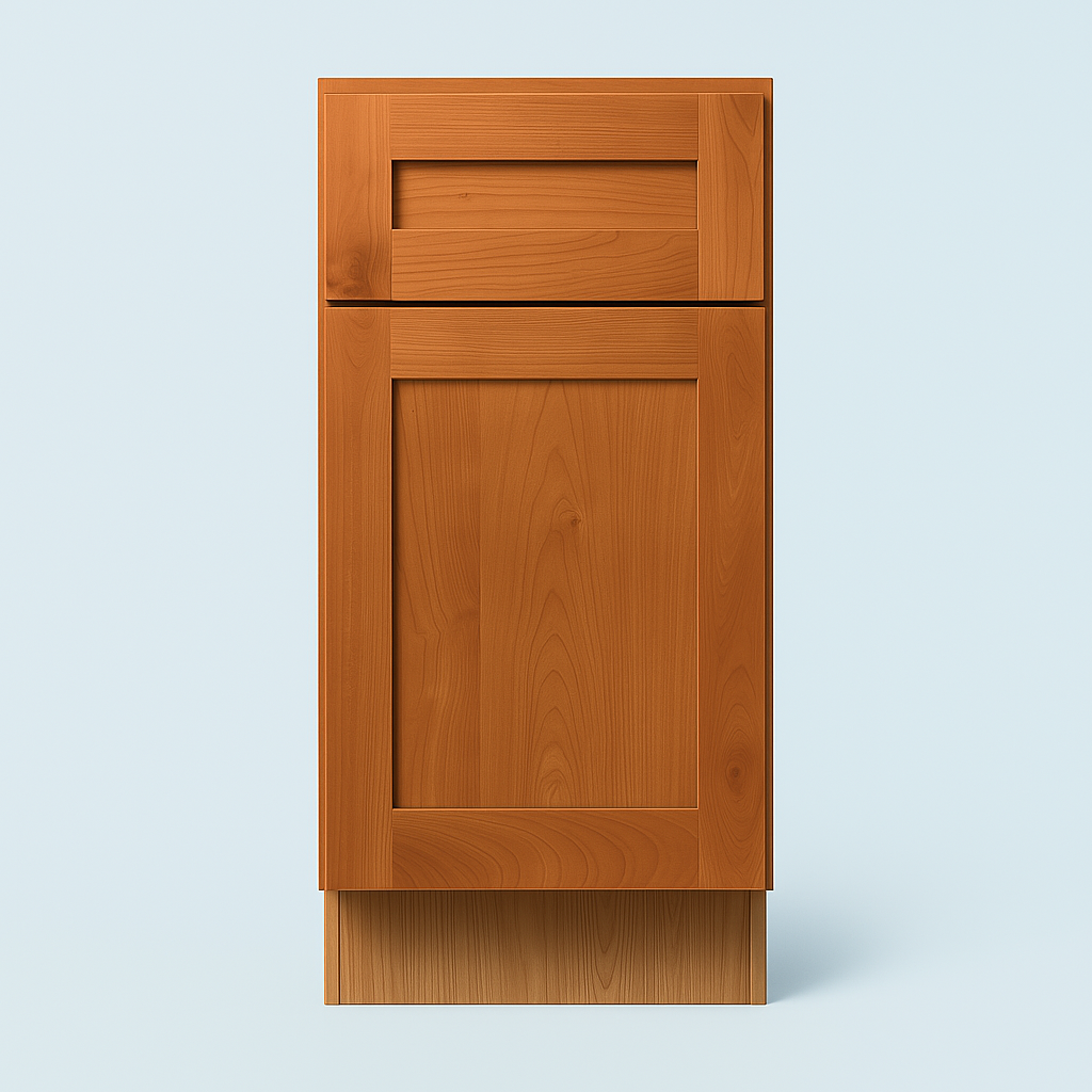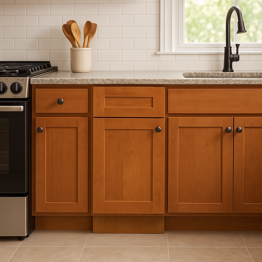 - Elegant Design: Shaker-style solid hardwood doors with a warm cinnamon stain to complement any kitchen decor.