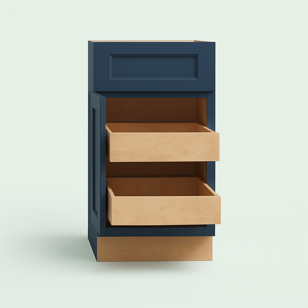 The Newport Mythic Blue Base Kitchen Cabinet combines bold design with practical features, including soft-close rollout trays and a knife block insert. Crafted from CARB-compliant plywood, it offers durability and timeless style.