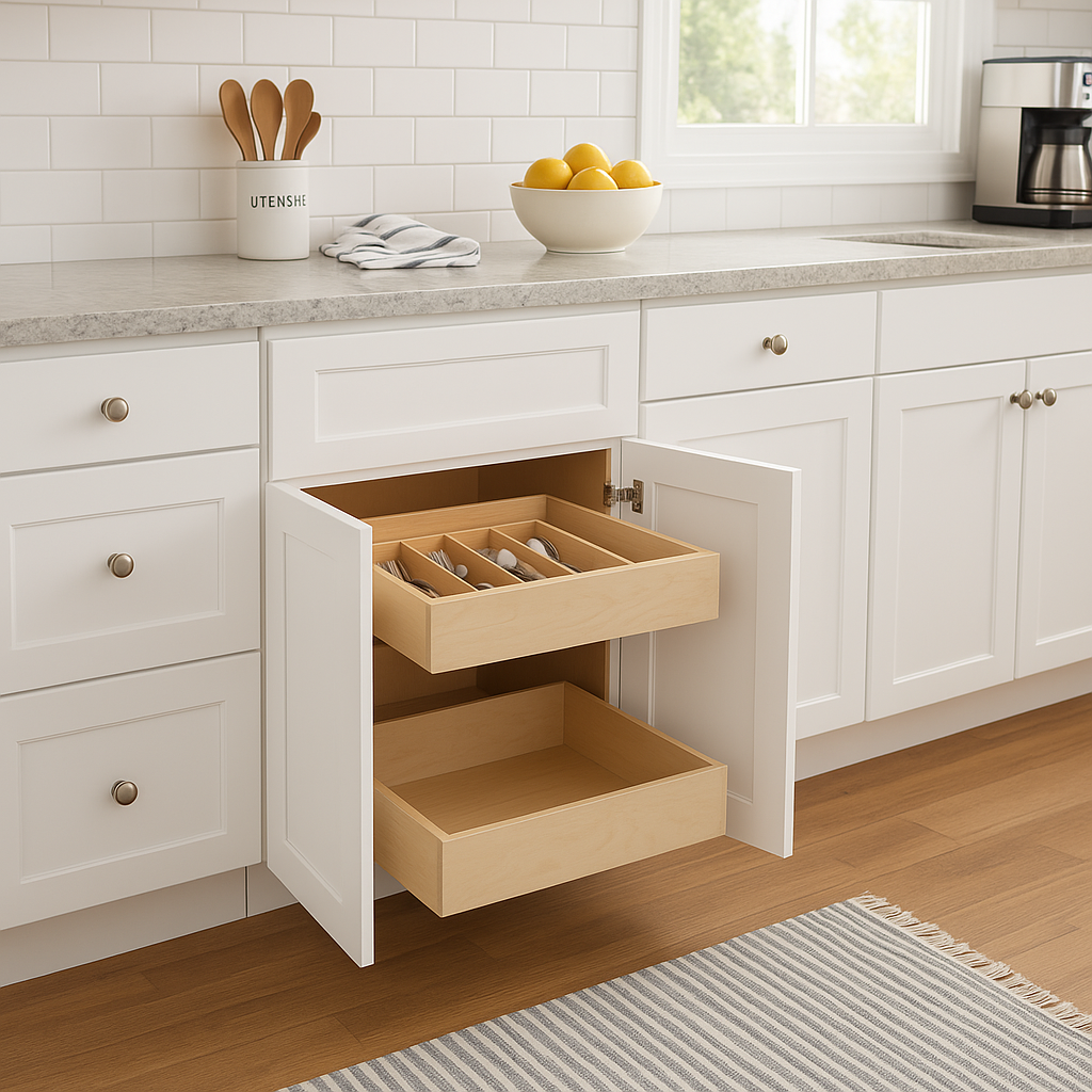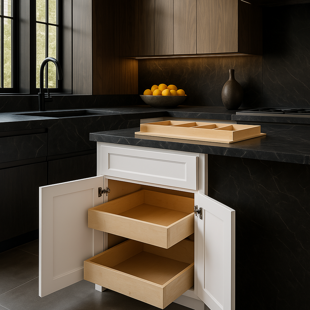 • Soft Close Rollout Trays: Includes two trays with a weight capacity of up to 90 lbs each.