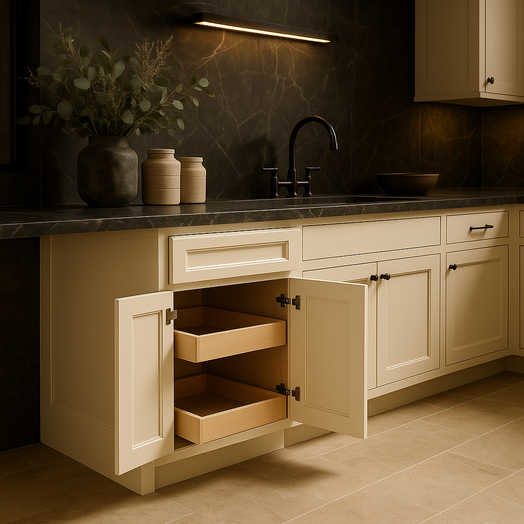 - Soft Close Features: Includes soft-close doors and drawers to maintain a smooth, quiet operation.