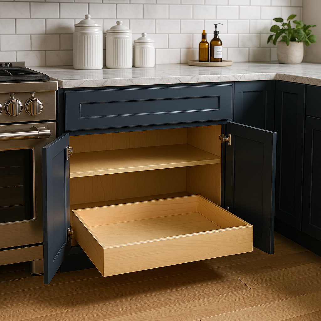 - Soft-Close Technology: Includes 6-way adjustable hinges and full extension drawer glides for smooth and silent operation.