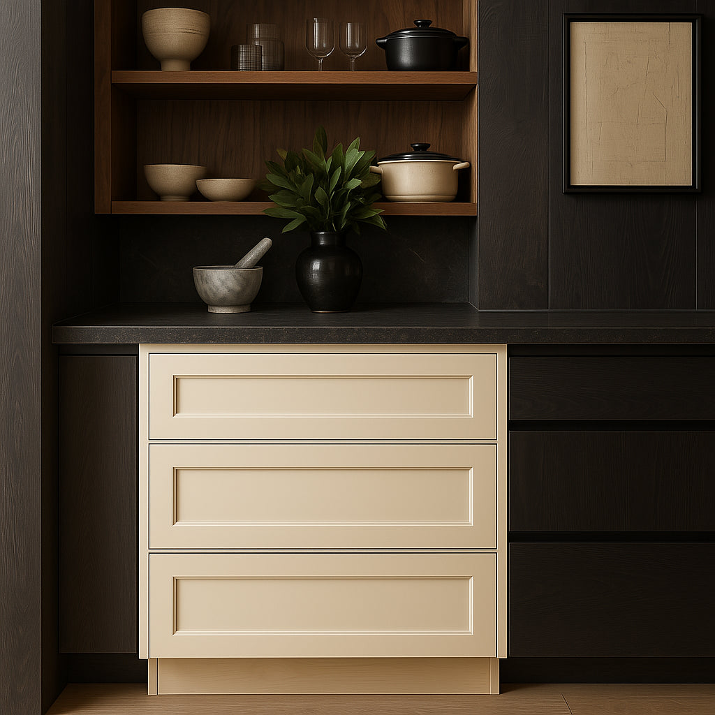 • Elegant Finish: Painted in a blended cream finish for a timeless appeal, complementing a variety of kitchen décors.
