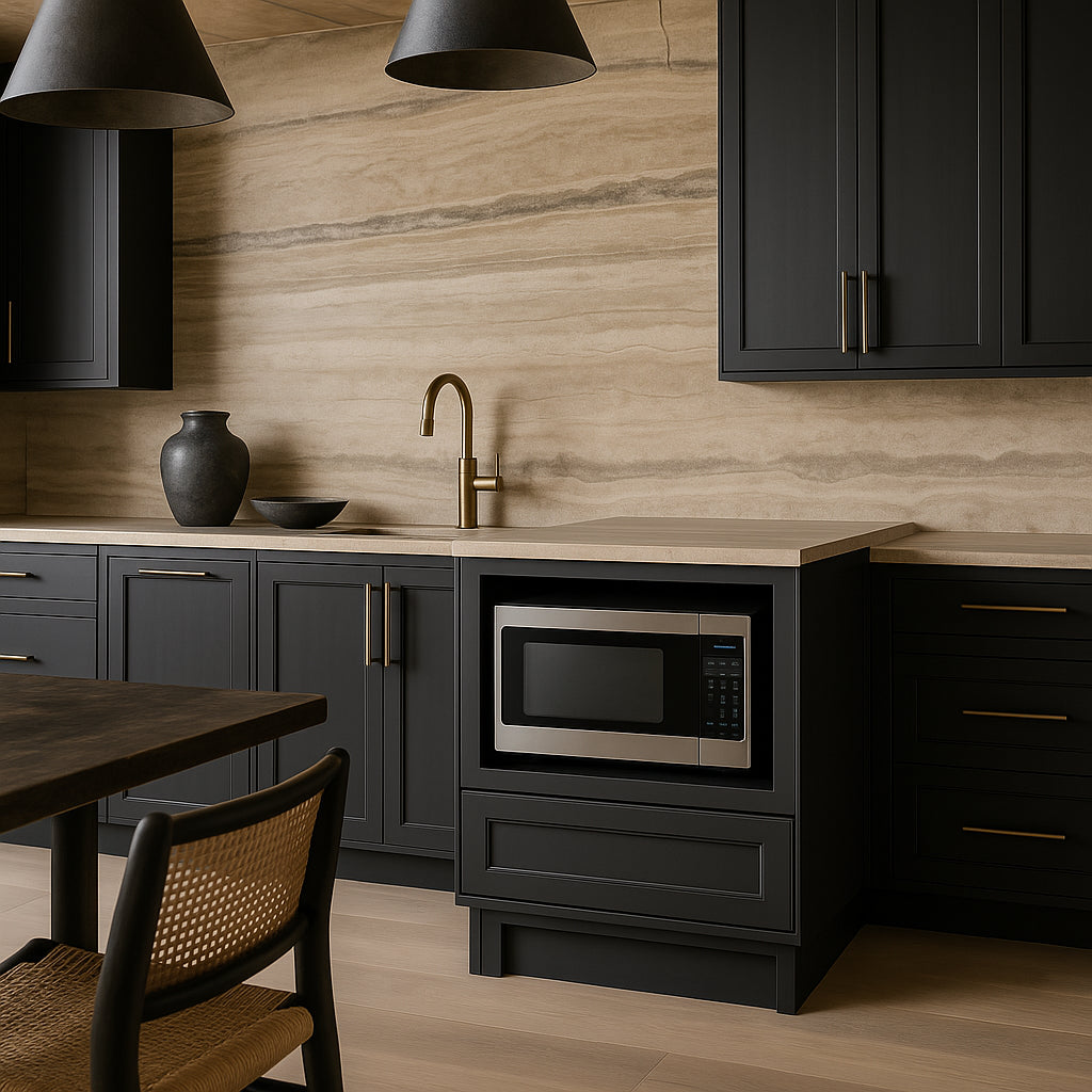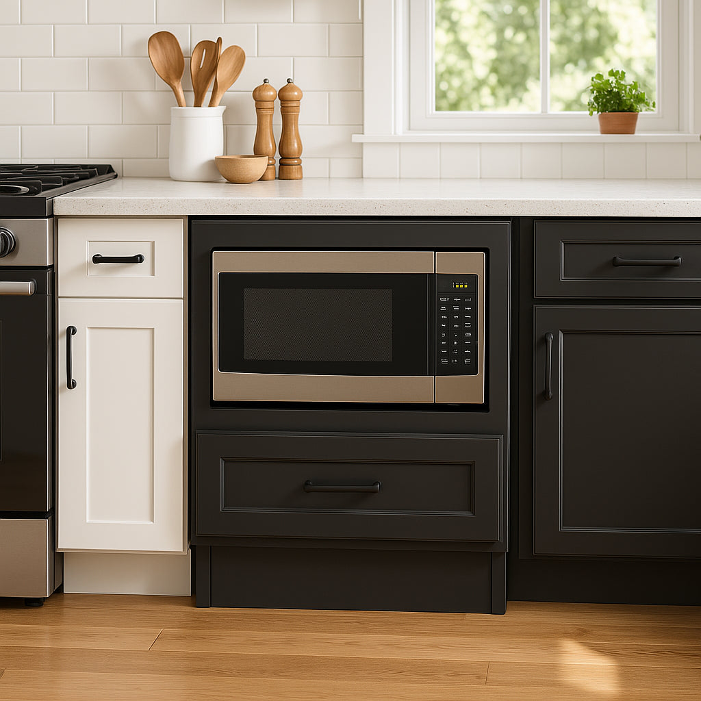 Upgrade your kitchen with the Newport Deep Onyx Microwave Base Cabinet and experience the perfect blend of style, function, and durability.