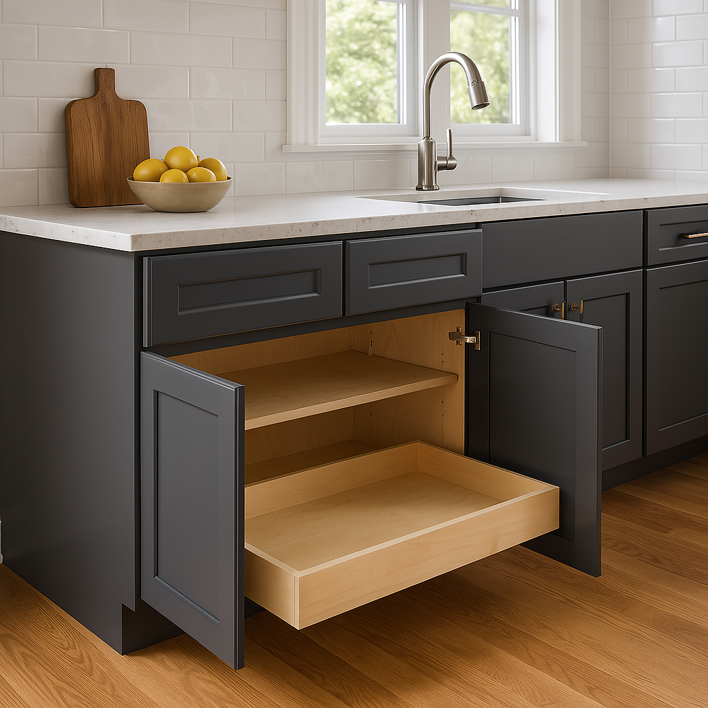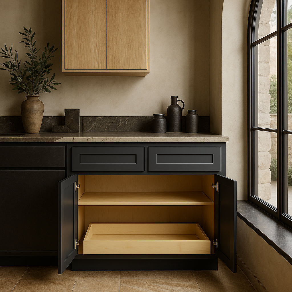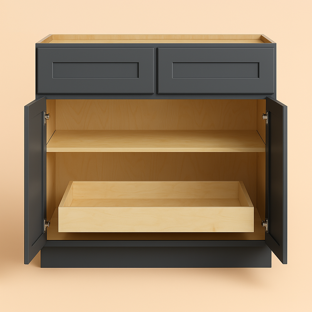 The Newport cooktop base cabinet in Deep Onyx is a masterpiece of modern kitchen design. Its shaker-style panels and rich, dark finish create a bold yet timeless aesthetic, perfect for pairing with contrasting hardware or light countertops. The soft-close drawers and robust plywood construction ensure both functionality and durability, making it a practical yet stylish choice. Transform your kitchen into a sophisticated culinary space with this essential piece.