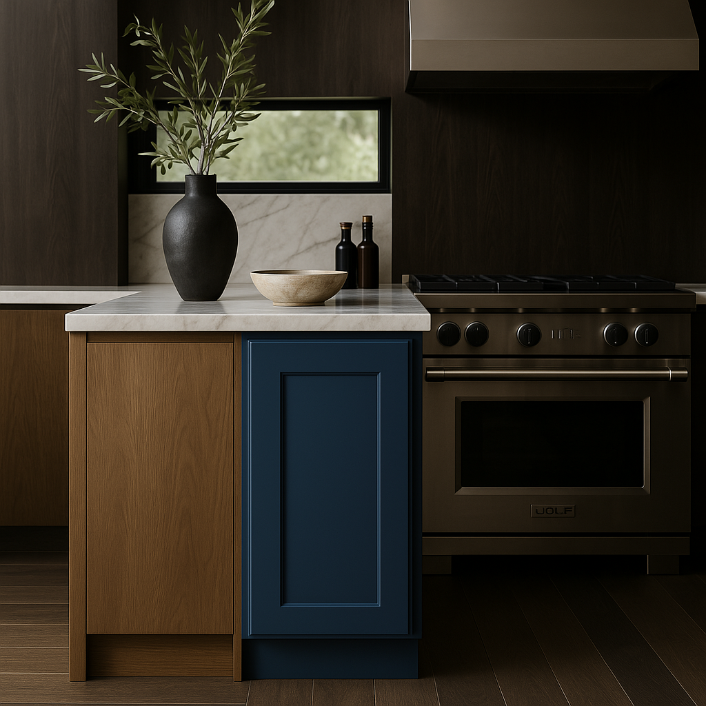 The Newport Mythic Blue Base Cabinet combines durable all-plywood construction with a bold mythic blue finish, offering a stylish and functional addition to any modern kitchen. Featuring Shaker-style doors, adjustable shelves, and soft-close mechanisms, this cabinet is designed for both elegance and practicality.