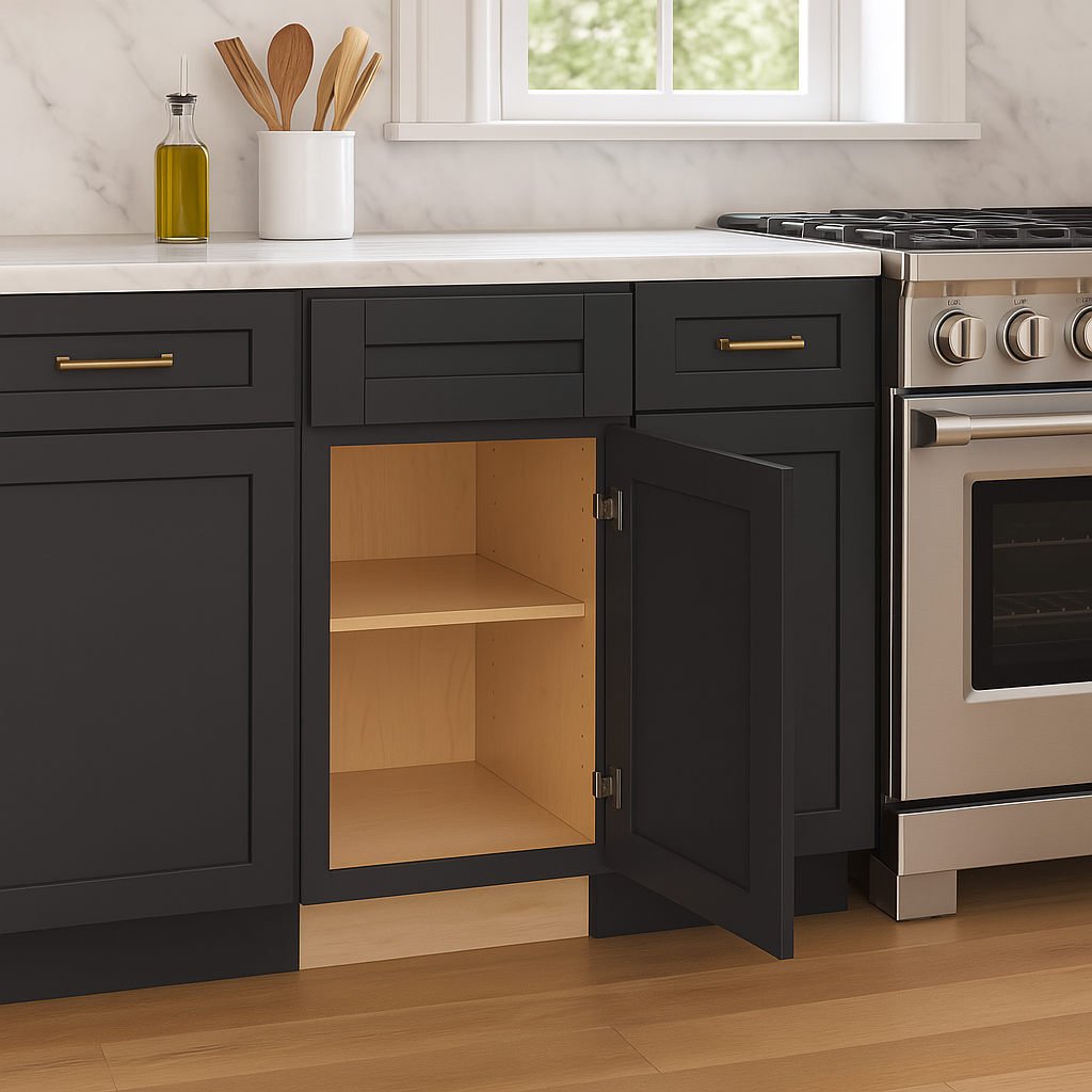 The Washington kitchen cabinet is a masterpiece of design and utility, blending the bold Valiant Onyx finish with a timeless shaker style. Its soft-close doors and adjustable shelves offer both sophistication and practicality, making it a versatile addition to any kitchen. Pair it with light countertops or metallic accents to create a striking contrast that elevates your space. This cabinet is not just storage; it's a statement of refined taste and modern luxury.