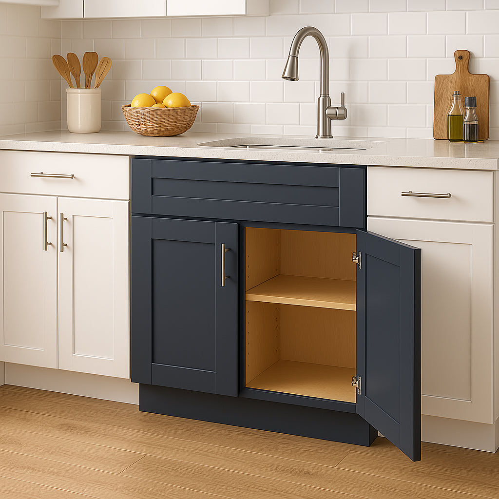 A: The cabinet is constructed with an all-plywood box, offering outstanding durability and strength, ideal for busy kitchens.