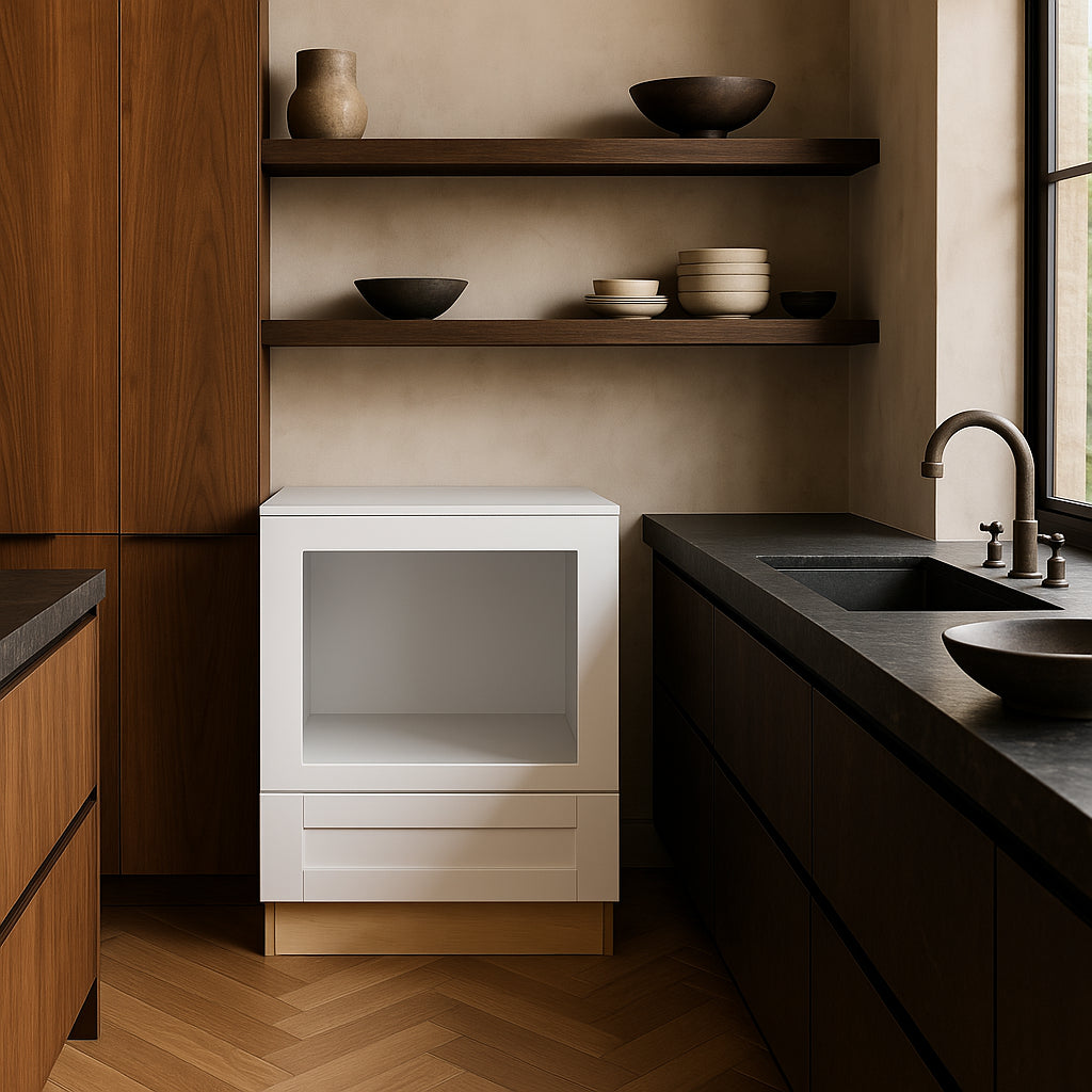 - Custom Look: Decorative moldings and trim panels facilitate a custom, built-in look for a sophisticated kitchen design.