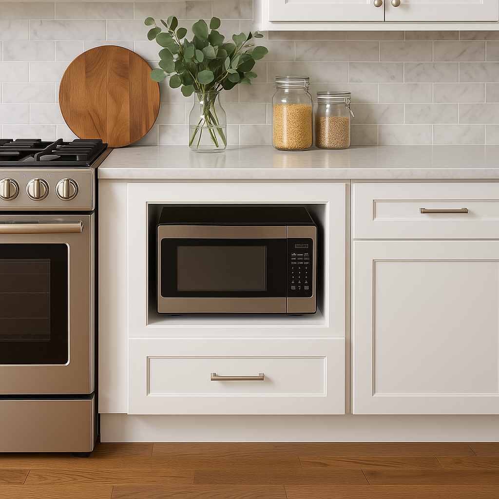 Upgrade your kitchen today with the Vesper White Microwave Cabinet for a blend of style, functionality, and durability.
