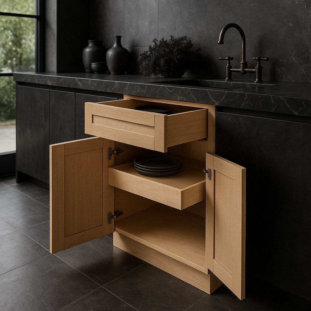 • Soft-Close Technology: Features soft-close doors and drawers for quiet and smooth operation.