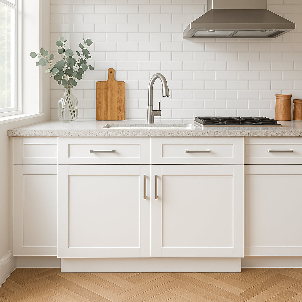 - Stylish Design: Shaker-style doors with wide frames and recessed panels for a classic appeal.