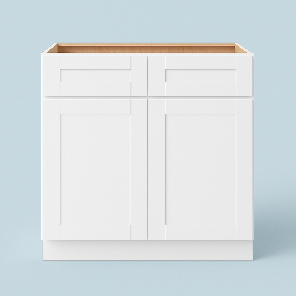 The Washington Vesper White Shaker Base Cabinet combines timeless design with modern functionality. Crafted from durable CARB II compliant plywood, it features soft-close doors and drawers, adjustable shelves, and a scuff-resistant Thermofoil finish for easy maintenance.