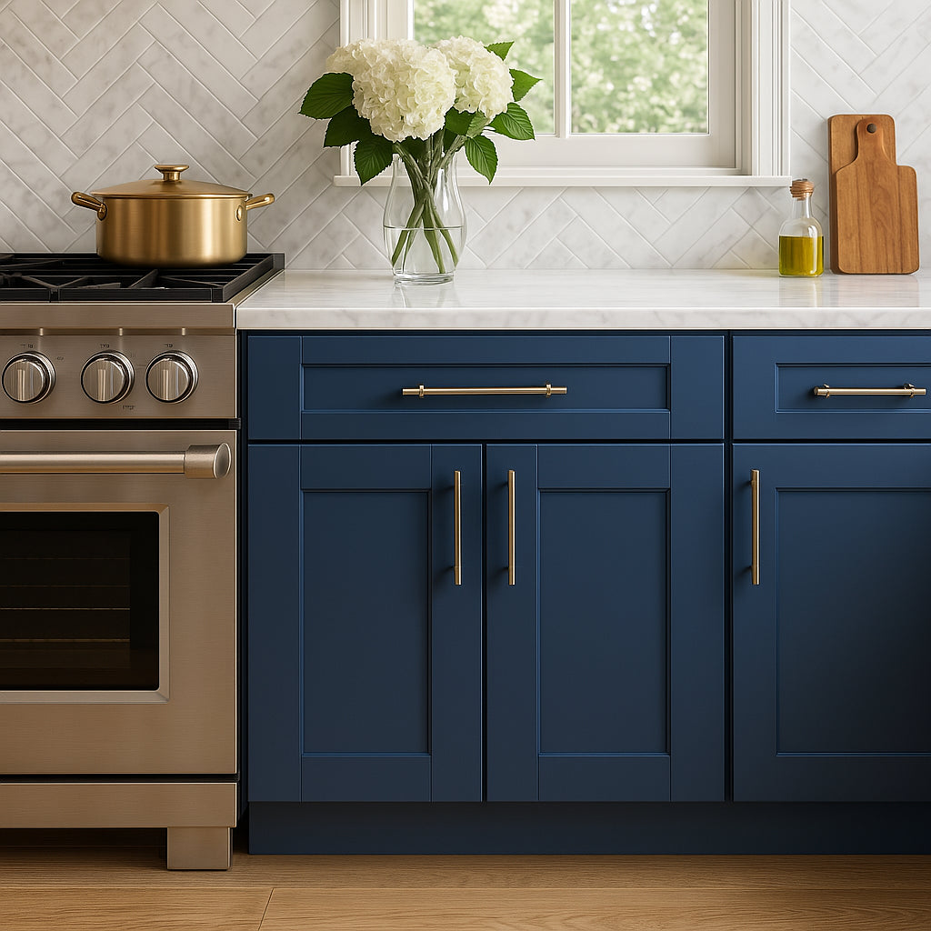 The Washington Vessel Blue Shaker Base Cabinet combines modern design with practical functionality. Featuring a deep blue finish and CARB II compliant plywood construction, it offers durability and style. Equipped with soft-close technology and adjustable storage, this cabinet is perfect for enhancing any kitchen.