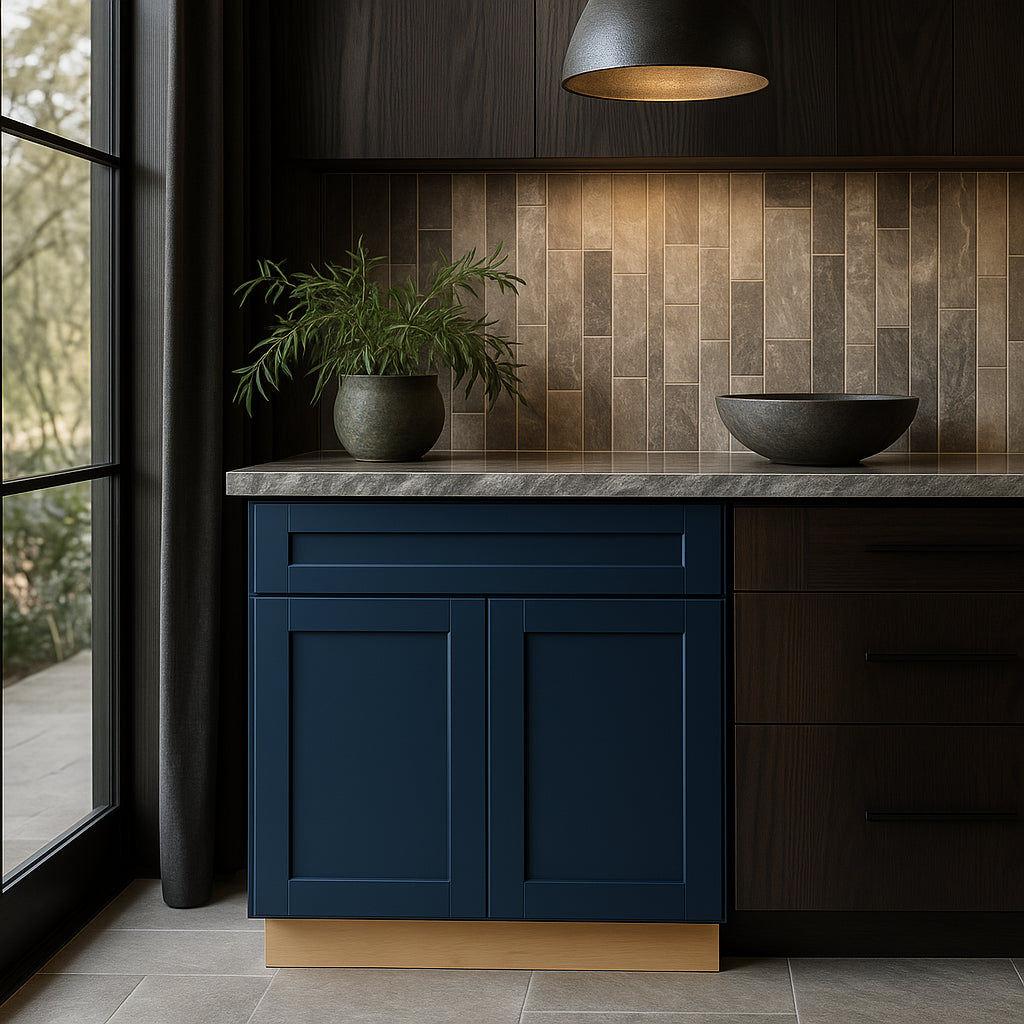 Elevate your kitchen with the Washington Vessel Blue Shaker Base Cabinet—an investment in style and quality.