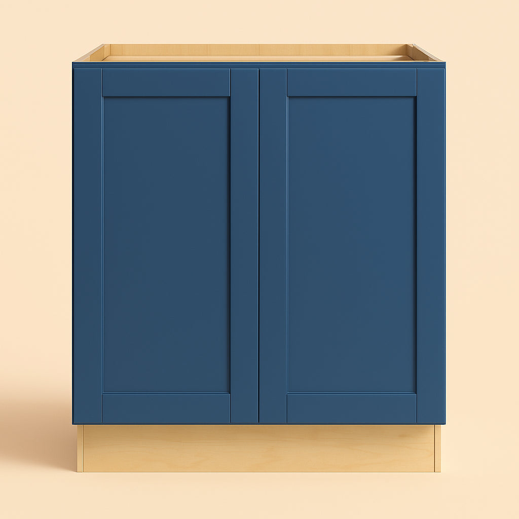 The Washington Vessel Blue Shaker Base Cabinet combines modern design with durable construction, featuring a striking blue finish and soft-close doors. Made from CARB II compliant plywood, it offers both style and functionality for your kitchen.