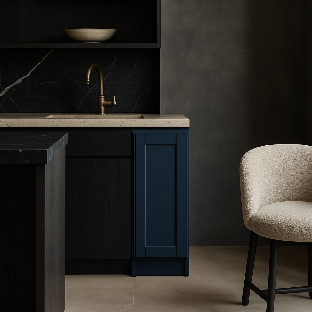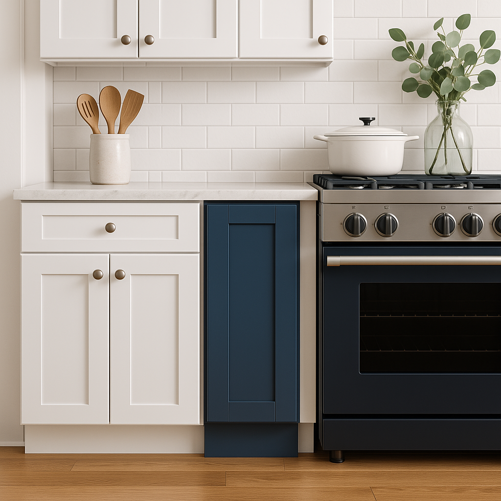 - Elegant Design: Features shaker-style doors in a vibrant vessel blue finish with a contrasting white back panel.