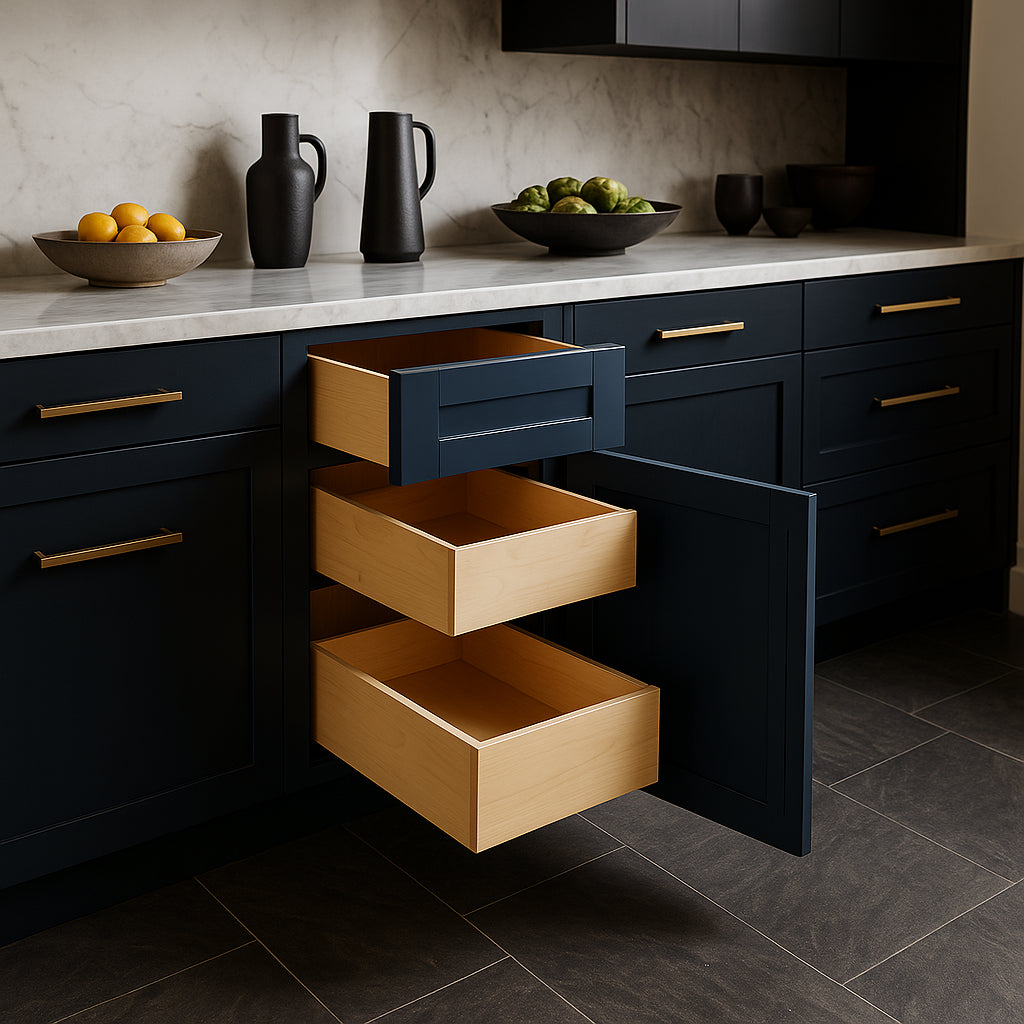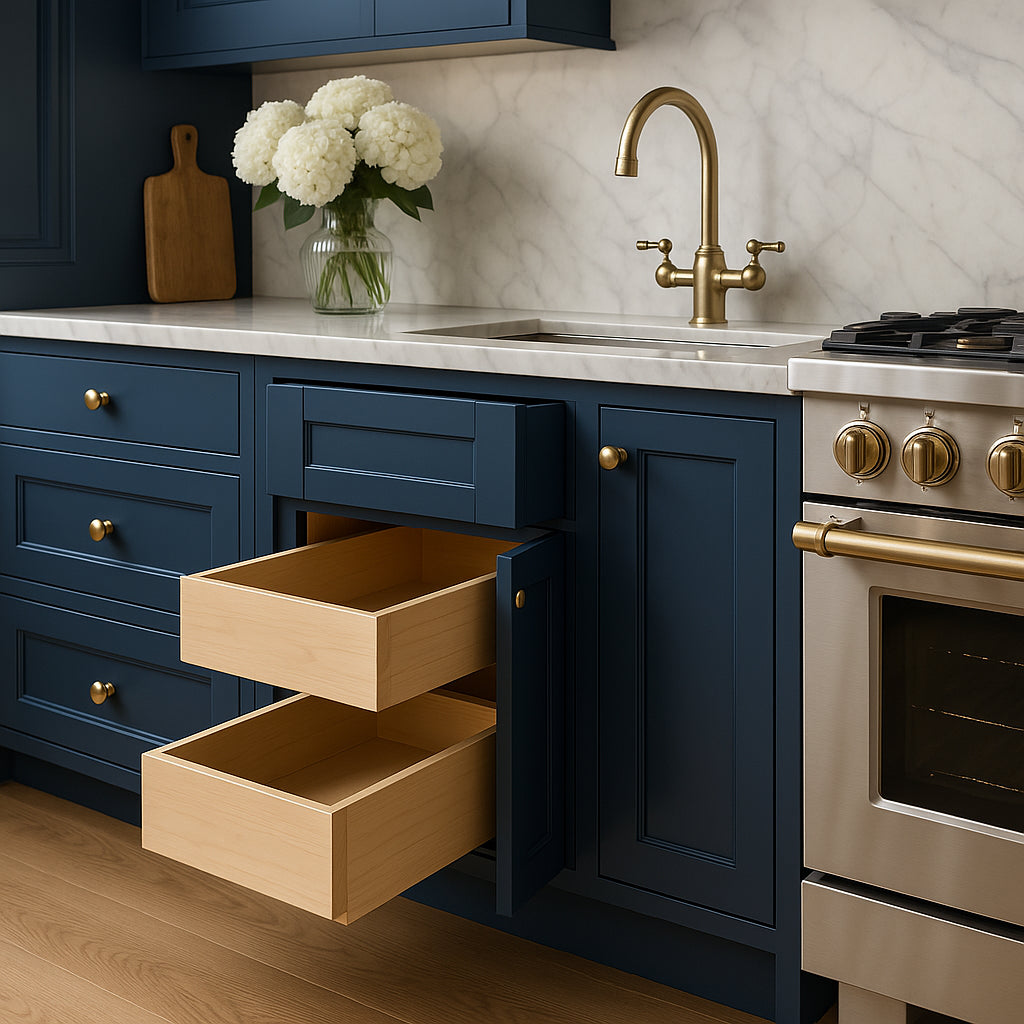 • Soft-Close Technology: Doors and drawers feature soft-close for a quieter, more elegant kitchen experience.
