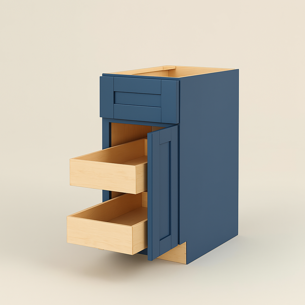 The Washington Vessel Blue Shaker Base Cabinet is a masterpiece of modern design, blending functionality with aesthetic appeal. Its deep blue hue creates a striking visual impact, while the contrasting white back panel adds a unique touch of versatility, doubling as a writable surface for family notes. Pair this cabinet with light countertops and stainless steel appliances to create a harmonious and sophisticated kitchen space. This cabinet is not just storage; it's a statement of refined taste and practical luxury.