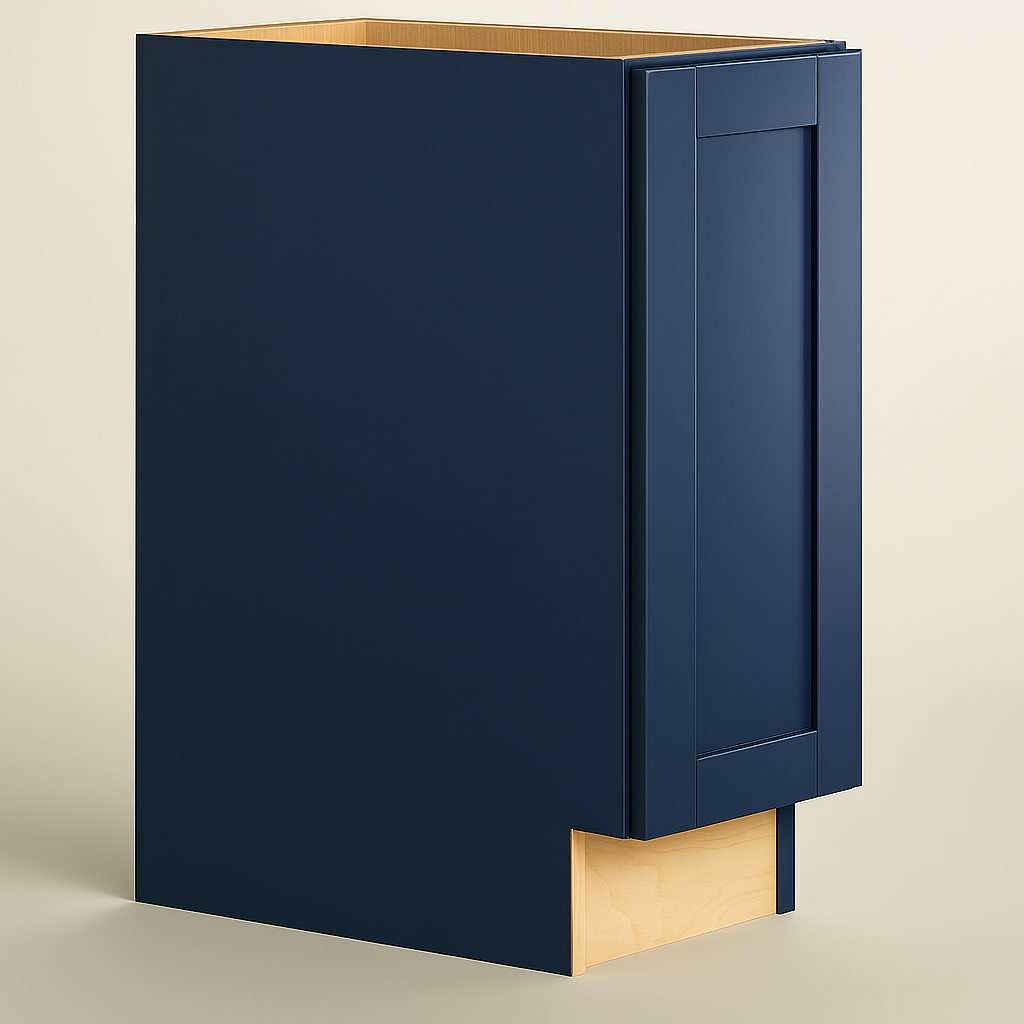 The Washington Vessel Blue Shaker Base Cabinet combines elegant design with practical functionality. Featuring a deep blue finish, shaker-style doors, and soft close hinges, this cabinet is crafted from durable CARB II compliant plywood and MDF. Perfect for modern kitchens.