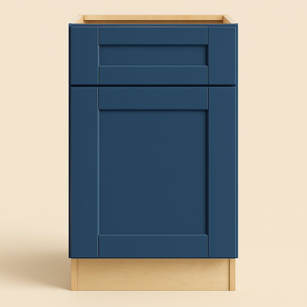 The Washington Vessel Blue Shaker Base Cabinet combines modern design with practical functionality. Featuring a durable plywood construction and a striking blue finish, it offers soft-close doors and adjustable shelves for optimal storage and style.