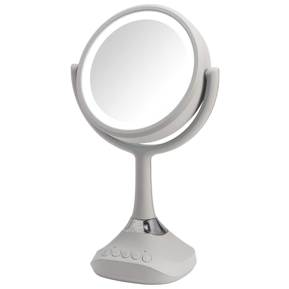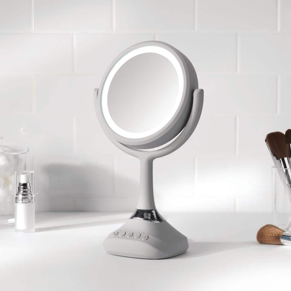 Home Netwerks 6.25 in. x 12.5 in. Bi-view Bluetooth LED Handheld Makeup Mirror in Gray