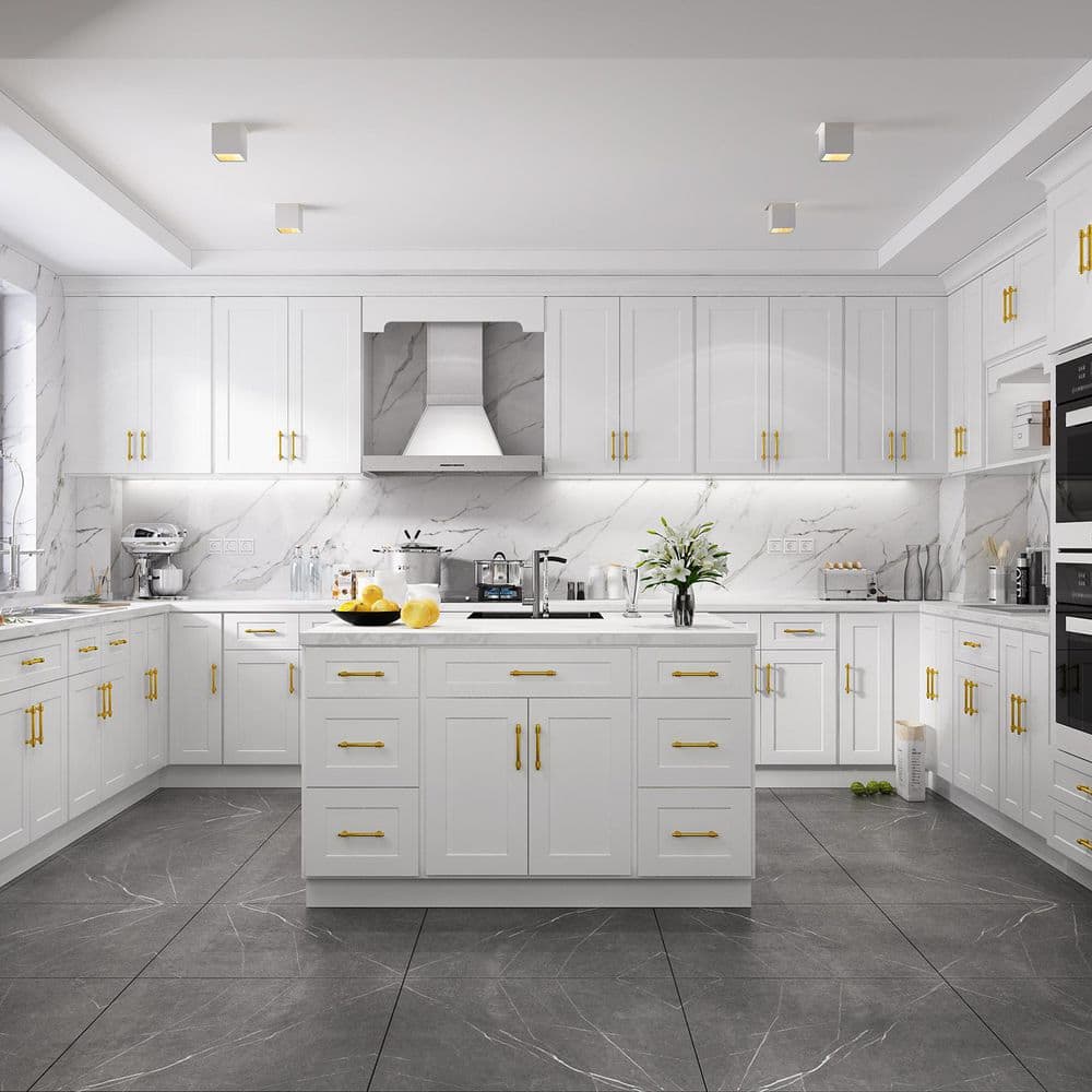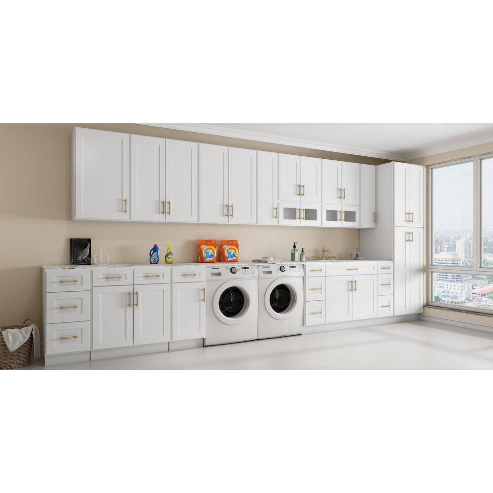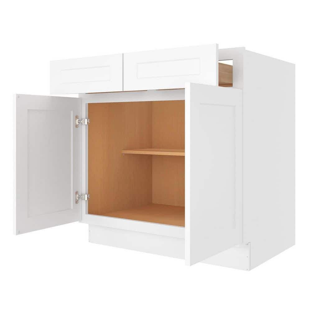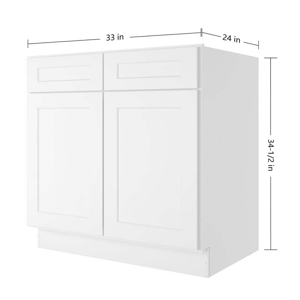 Elevate your home with the HOMEIBRO 33-in White Painted Shaker Style Base Cabinet. Featuring durable birch wood construction and a UV-coated finish, this cabinet offers a sleek, modern aesthetic and scratch-resistant durability. Ideal for kitchens, bathrooms, or laundry rooms, its soft-close drawers ensure smooth and quiet operation.