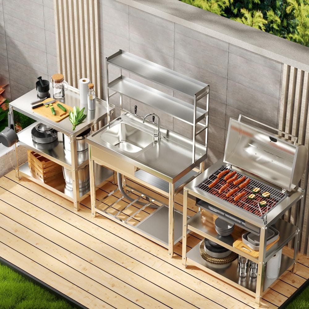 • 360° Rotating Faucet: Features a gooseneck faucet with hot and cold water options for flexible use.