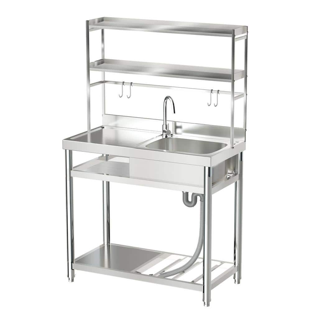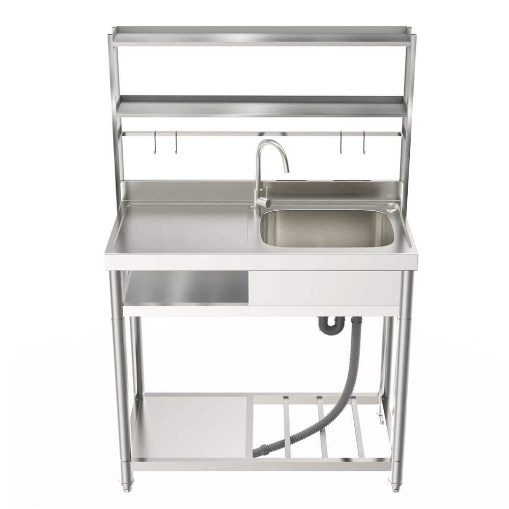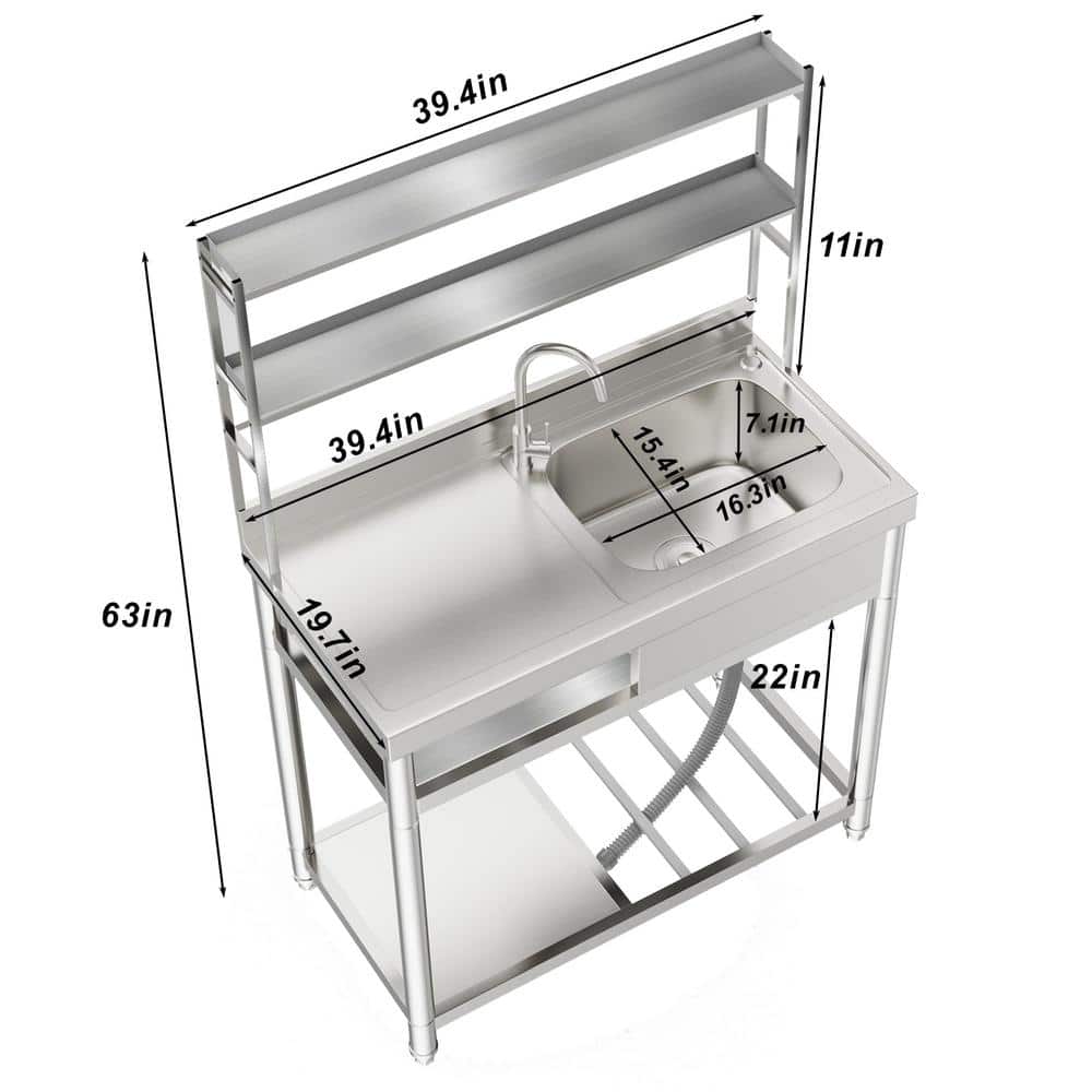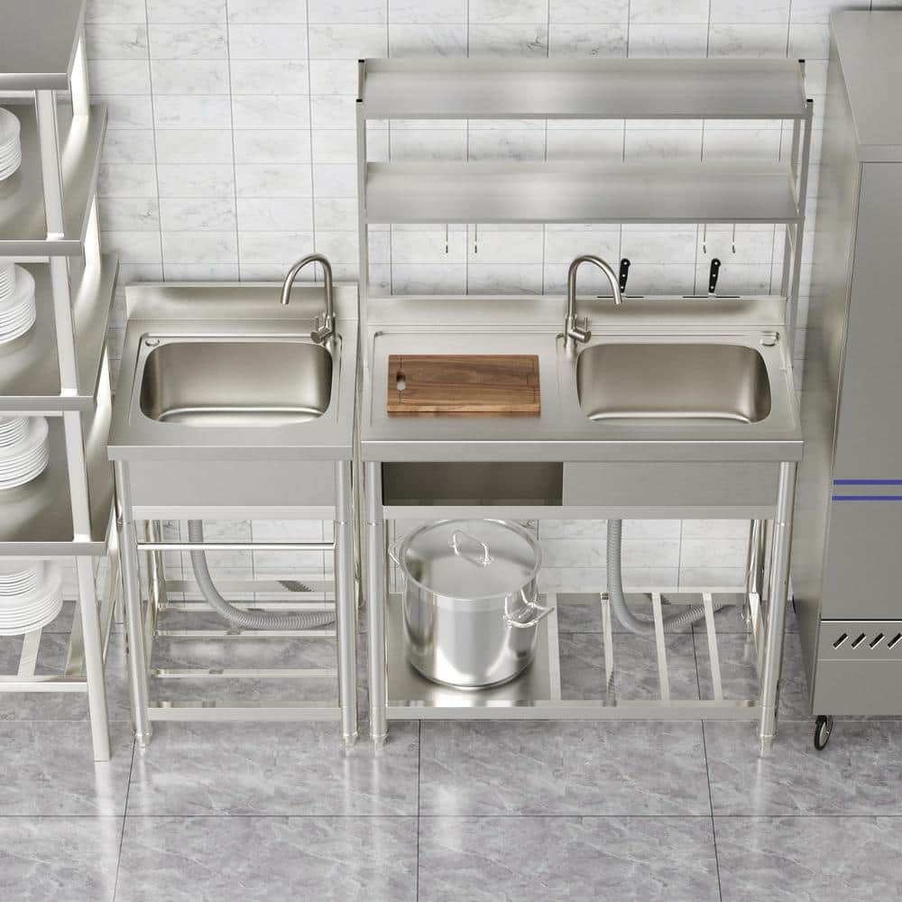The HOMEIBRO Freestanding Laundry/Utility Sink combines a robust 304 stainless steel build with a sleek polished finish, perfect for heavy-duty washing tasks. Featuring a right-side basin and practical storage, it's ideal for utility rooms or professional environments, ensuring cleanliness and efficiency.