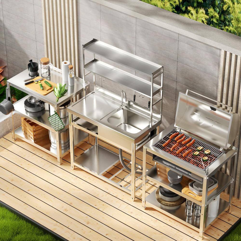 Q: Does this sink have adjustable feet for uneven floors? A: Yes, the sink comes equipped with height-adjustable feet to ensure stability on any surface.