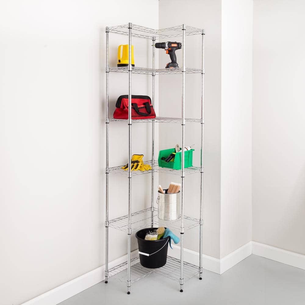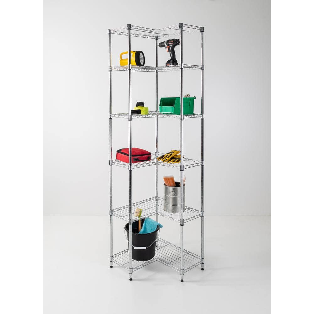 Honey Can Do Steel 20 in. W x 72 in. H x 10 in. D 6-Tier L Corner Space Saving Garage Storage Shelving Unit, Chrome