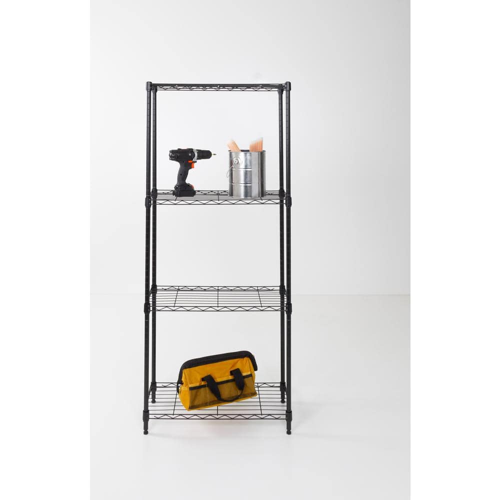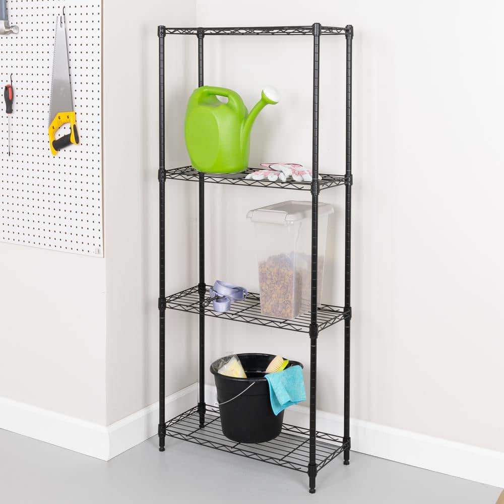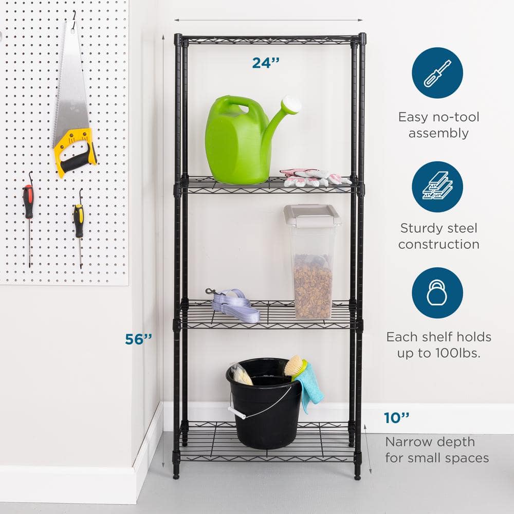 Honey Can Do Steel 24 in. W x 56 in. H x 10 in. D 4-Tier Space Saving Garage Storage Shelving Unit, Black