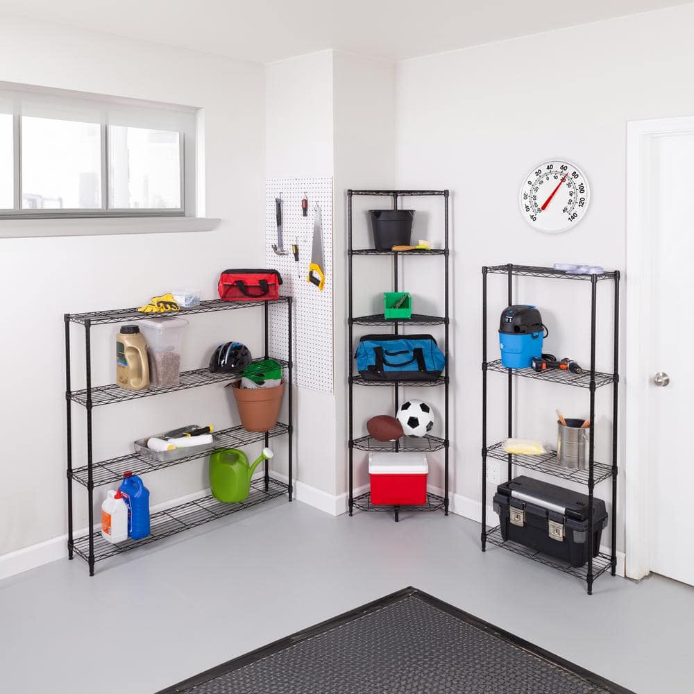 4-Tier Black Steel Space-Saving Garage Shelving Unit
