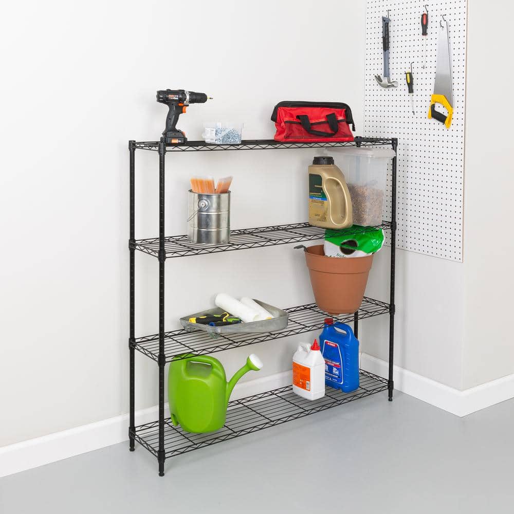 Upgrade your storage strategy with the Honey Can Do 4-Tier Narrow Depth Garage Shelving Unit. This sleek black steel shelving provides a modern touch while optimizing small spaces with its unique 10-inch depth. Ideal for garages or pantries, its sturdy construction ensures long-lasting organization solutions.