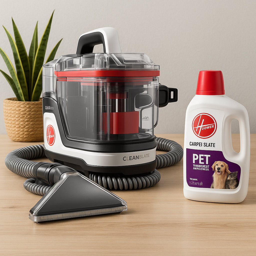 The HOOVER CleanSlate Pro is a portable carpet cleaner designed for tackling tough stains on carpets and upholstery. It features powerful suction, versatile cleaning tools, and a pet-friendly cleaning solution, making it ideal for pet owners and busy households.