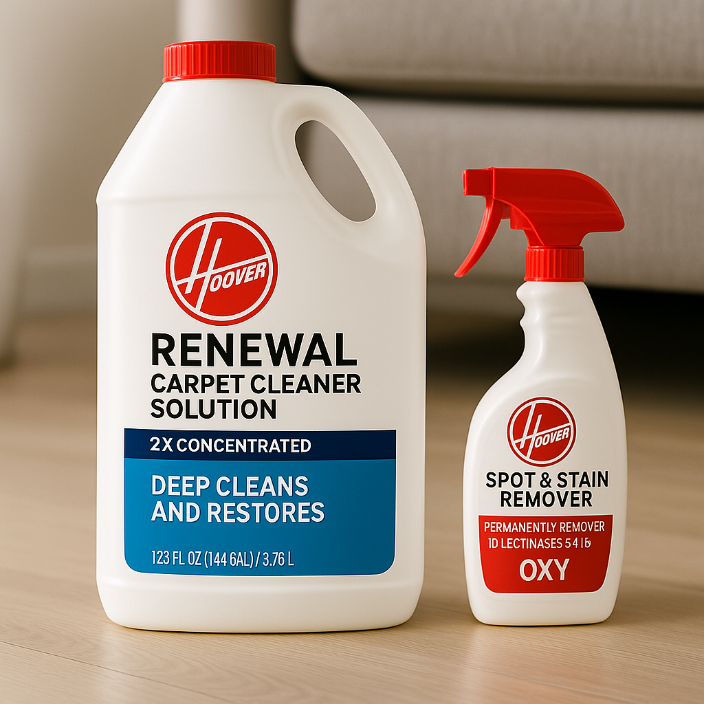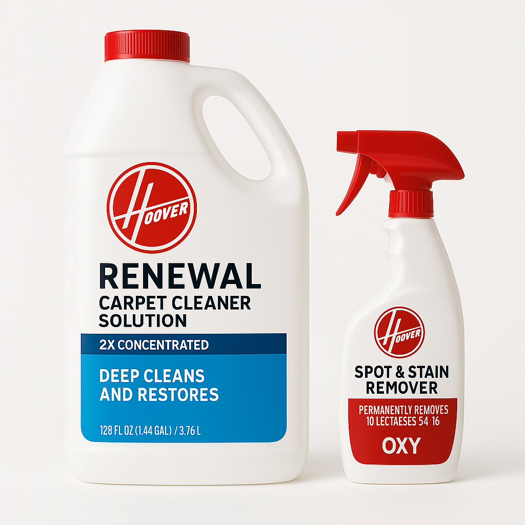 Experience the ultimate cleaning power with HOOVER's Renewal Carpet Cleaner Solution and Oxy Stain Remover—order now for a fresher, cleaner home!