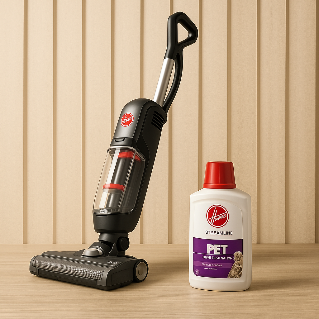 The HOOVER Streamline Corded Wet/Dry Floor Cleaner simplifies floor care with its dual functionality to wash and vacuum simultaneously. Designed for pet owners, it includes a special enzymatic solution to tackle pet messes and odors effectively.