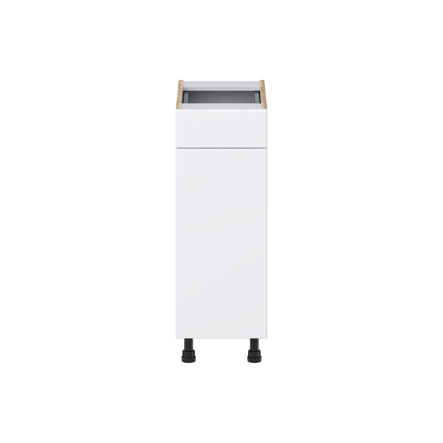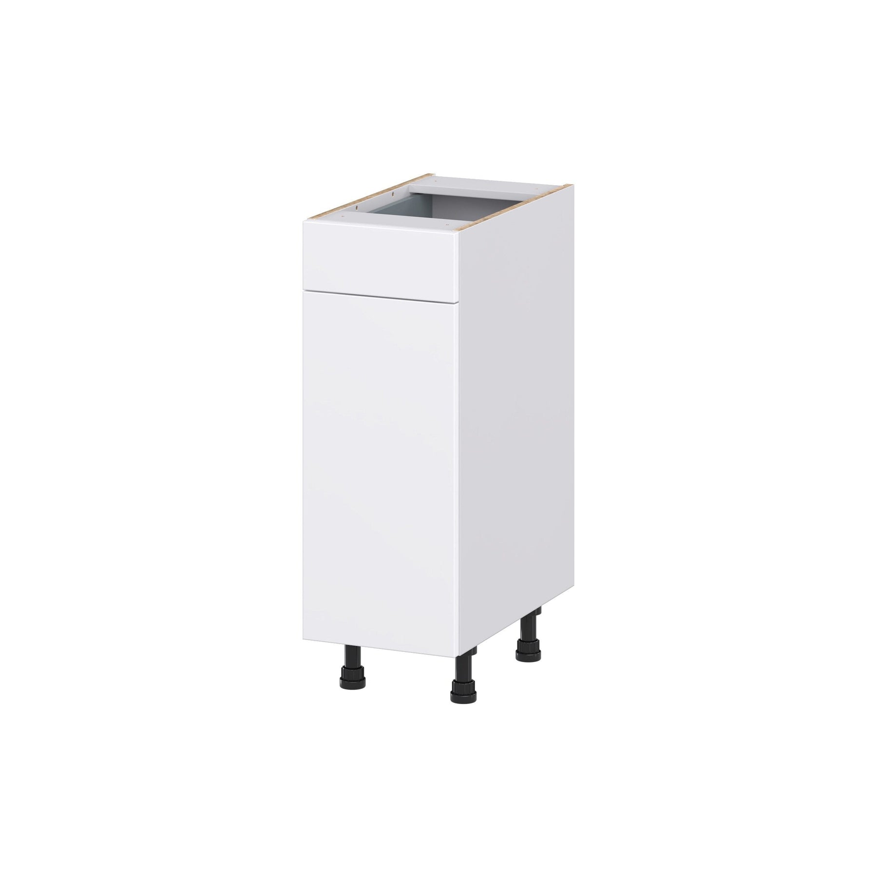 Transform your space with the Hugo & Borg Lasalle Bright White Slab Base Cabinet. As a fully-assembled unit, this cabinet offers a pristine flat panel door style in durable melamine, blending functionality with modern aesthetics. Perfect for both professional contractors and DIY enthusiasts, its frameless design provides full access, adding up to 20% more storage space.
