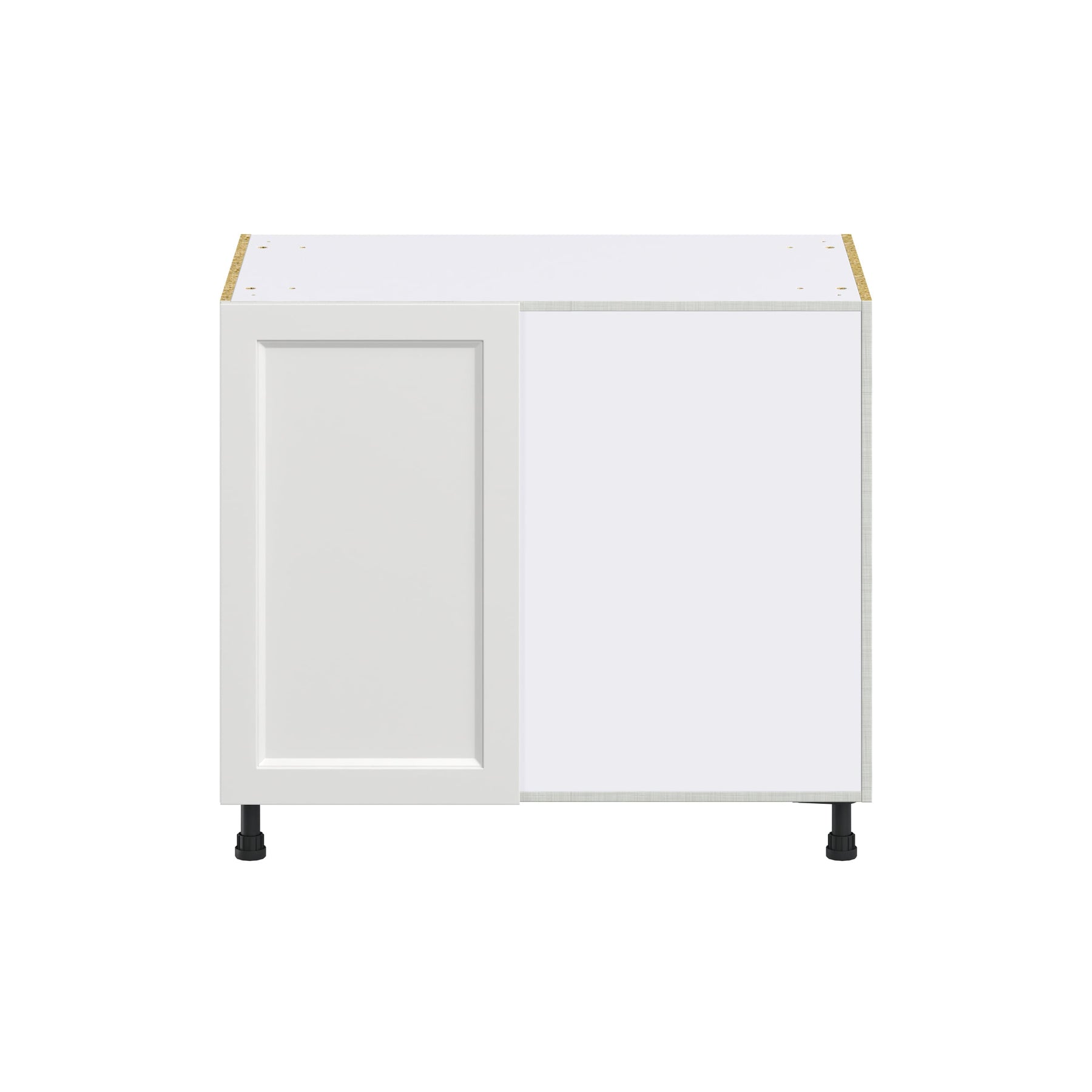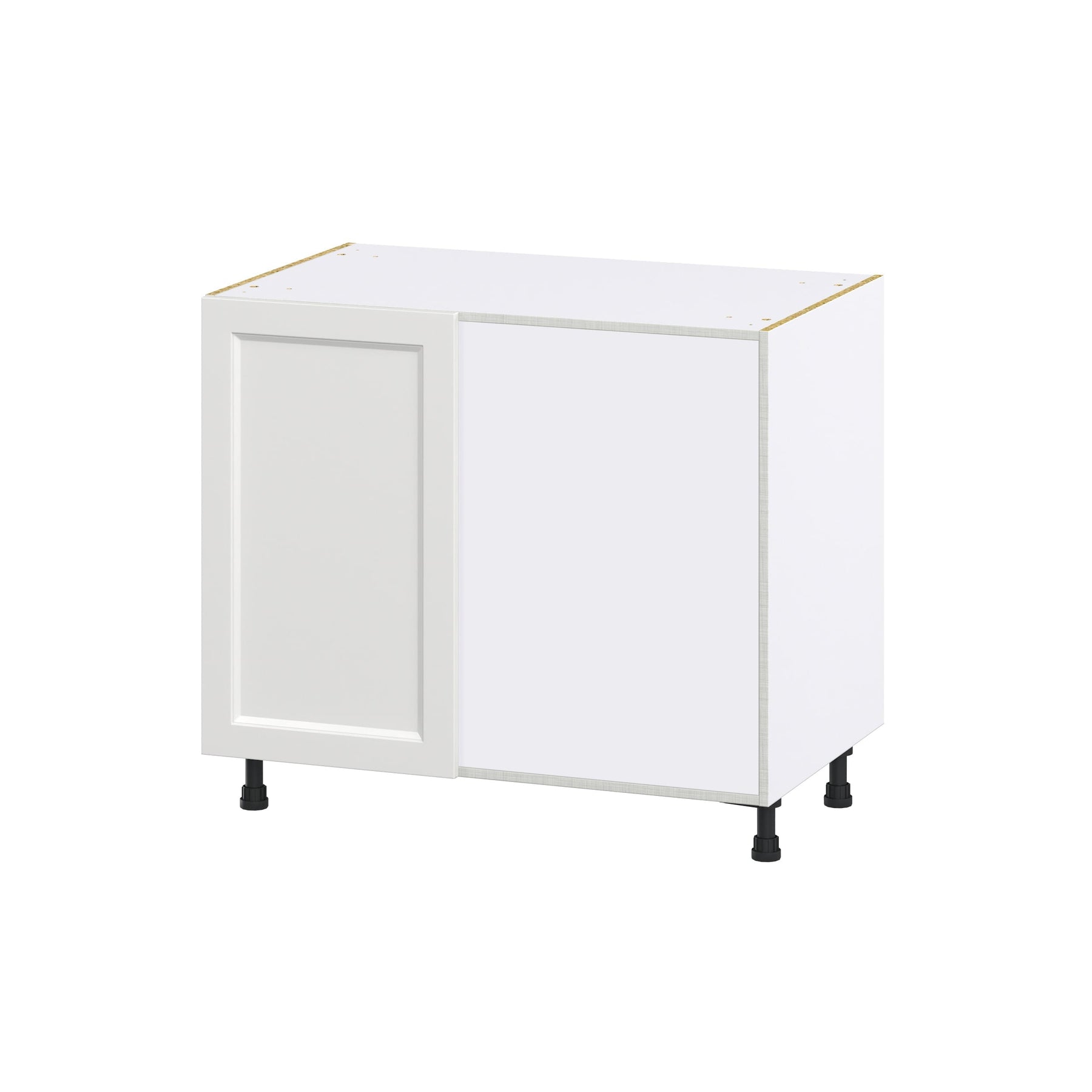 The Hugo&Borg Riviera Blind Corner Base Cabinet is an elegant storage solution for maximizing kitchen space. With its recessed panel Shaker style and bright white finish, this cabinet pairs a contemporary aesthetic with practical functionality, making it ideal for both professional remodels and sophisticated home DIY projects.
