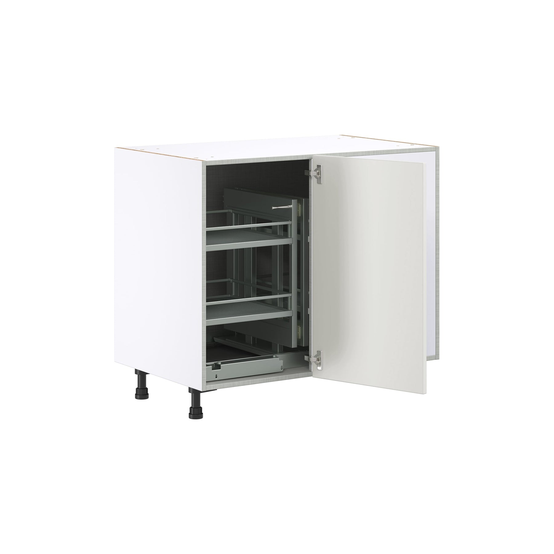Access: Magick corner pull out hardware allows complete access to stored items.