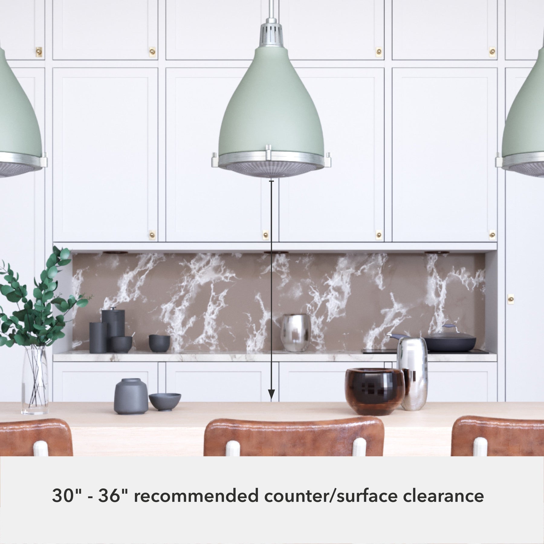 Illuminate your space with the Hunter Bluff View 3-Light Pendant Light, featuring a transitional design in a sophisticated soft sage finish with clear domed glass shades. This medium-sized pendant adds a touch of elegance and industrial charm, perfect for kitchens, dining rooms, and foyers.