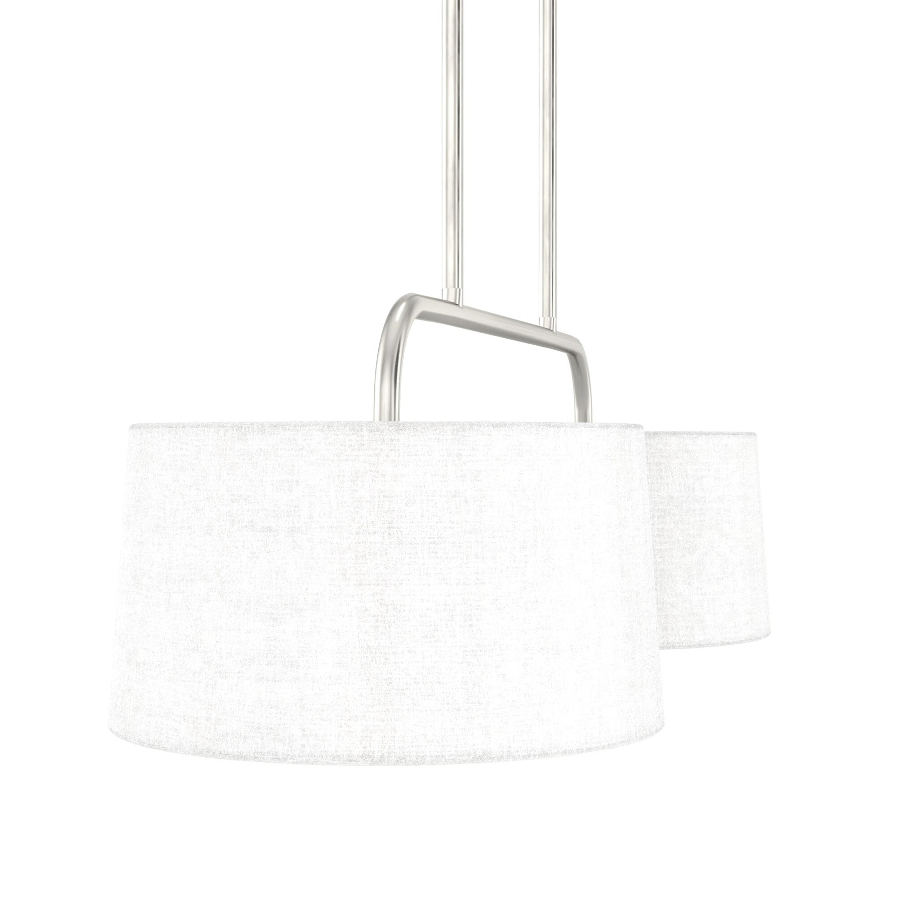 Envelop your space in modern elegance with the Cottage Hill Pendant, its brushed nickel finish casting a sophisticated yet inviting glow. The seamless blend of clean lines and soft linen texture of the shades transforms any ordinary kitchen island into a statement of style. Imagine it suspended gracefully over a rustic wood dining table, offering a contrasting harmony that is both visually striking and functionally enlightening. Truly, this pendant is not just a light—it's an essential element of luxurious living, poised to elevate every vignette it touches.