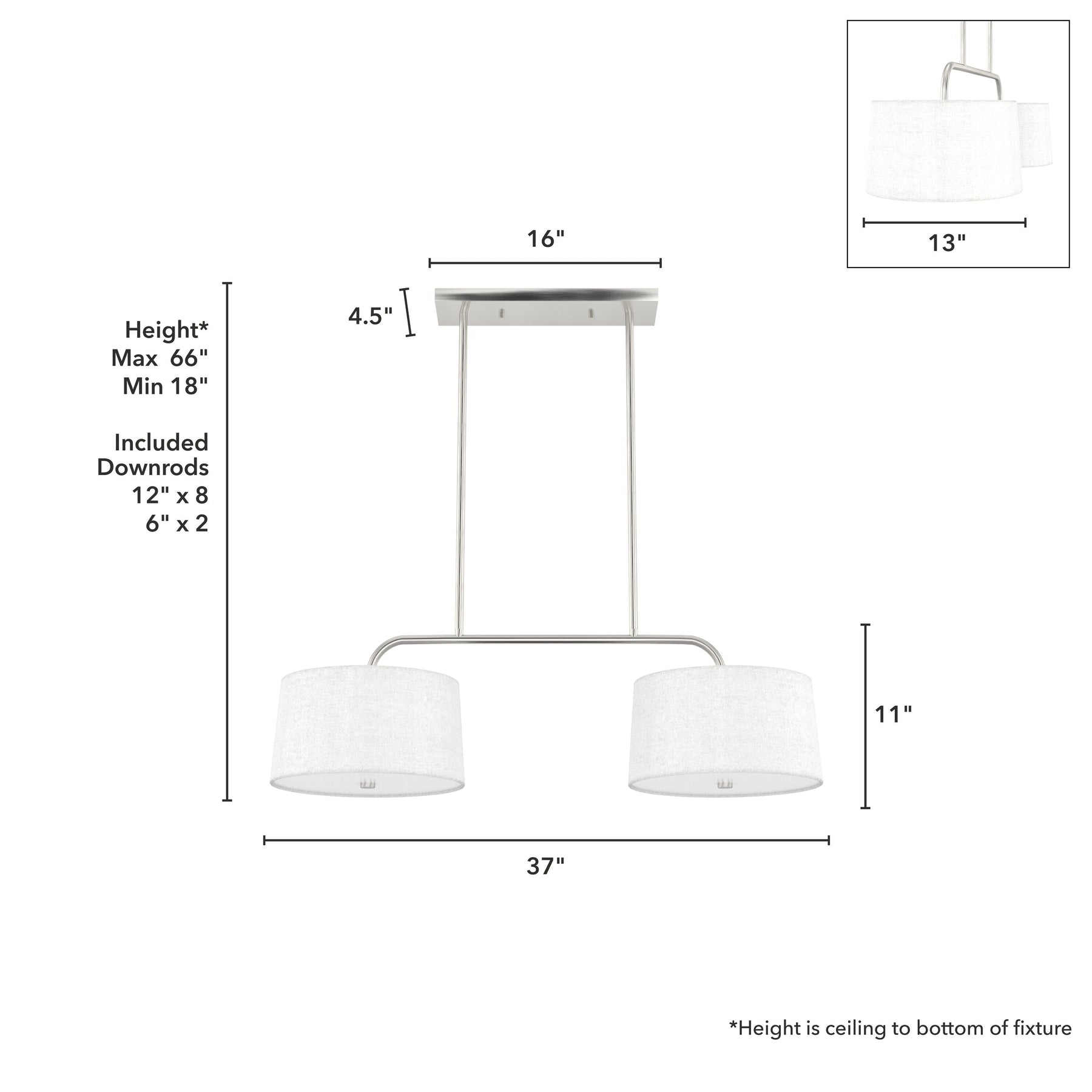 - Flexible Hanging: Includes adjustable downrods for a customized height from 18 to 66 inches.