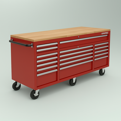 The Husky 72-inch Mobile Workbench Tool Chest combines robust storage with a functional work surface, featuring 18 drawers, a built-in power strip, and durable 21-Gauge steel construction. Perfect for professional and DIY use.