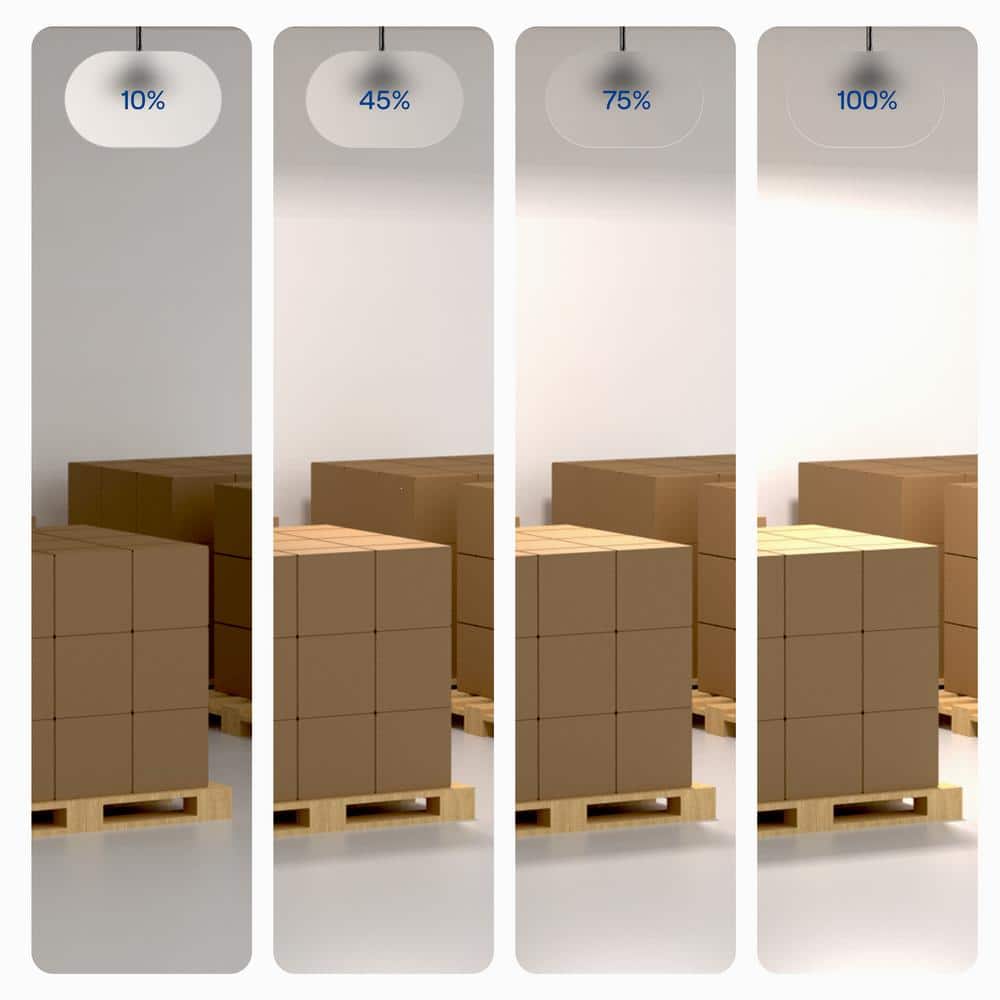 Q: Can the brightness be adjusted? A: Yes, this light supports 1-Volt to 10-Volt dimming, allowing you to adjust the light levels according to your preferences.