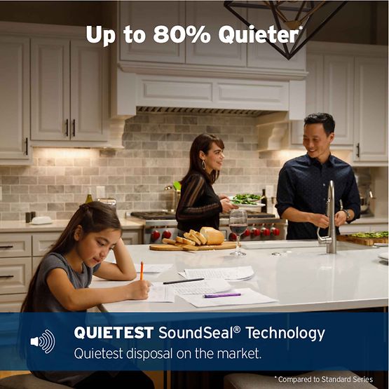 Q: How loud is it compared to standard disposals? A: With SoundSeal technology, it’s up to 80% quieter than standard series disposals.