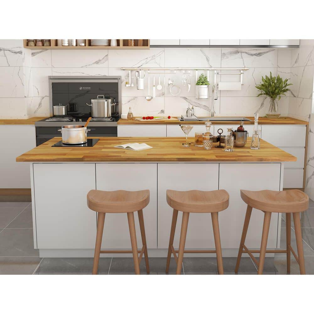 Elevate your kitchen to new heights of charm and functionality with this stunning Acacia countertop—shop now and transform your space!