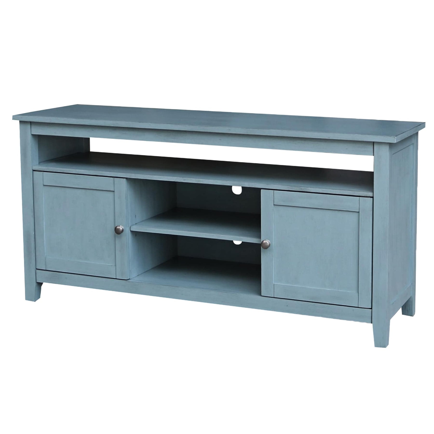 Enhance your living space with the Traditional Ocean Blue TV Cabinet by International Concepts. This striking cabinet is designed to accommodate TVs up to 60 inches, blending classic style with practical functionality. Crafted from solid parawood, its robust structure promises durability and eco-friendliness, with a stunning ocean blue finish that adds a pop of color to any room.
