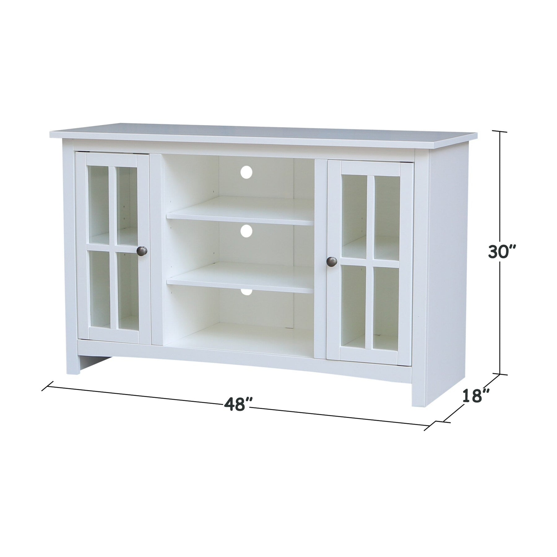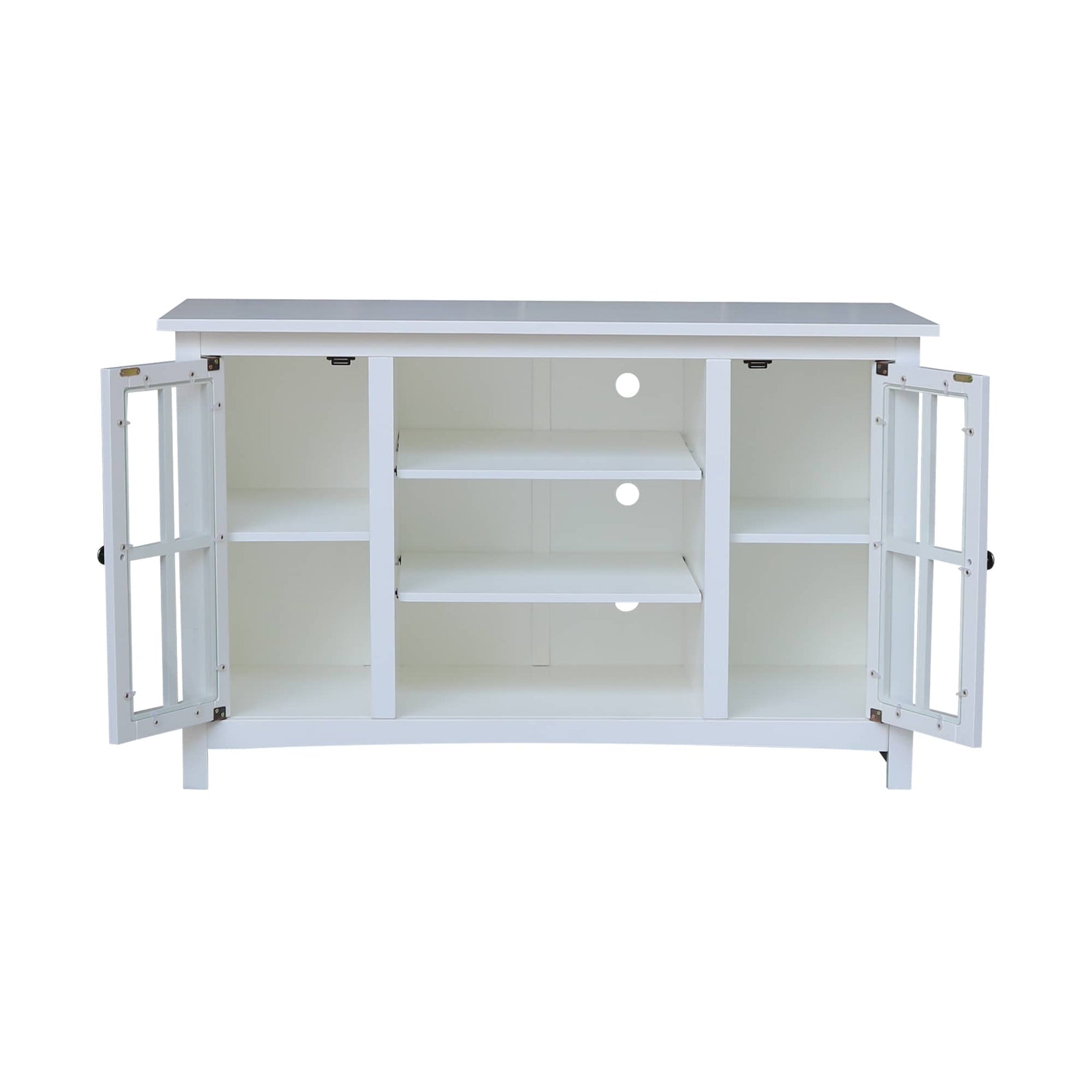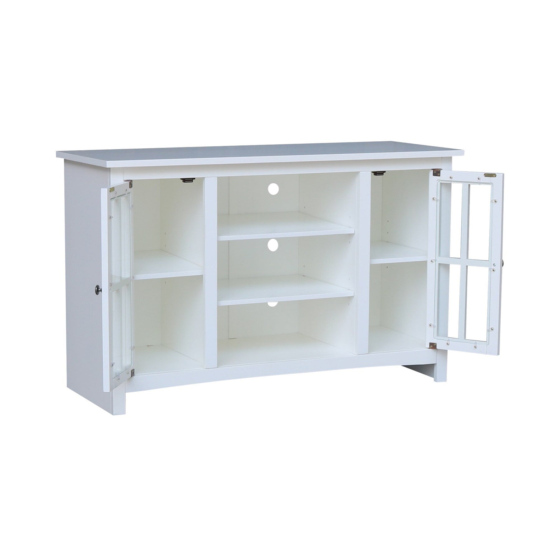 Elevate your living space with the International Concepts Traditional White TV Cabinet, designed to accommodate TVs up to 52 inches. This stylish piece combines elegance with functionality, constructed from eco-friendly solid parawood for lasting durability. Its versatile white finish makes it a perfect fit for any home decor.